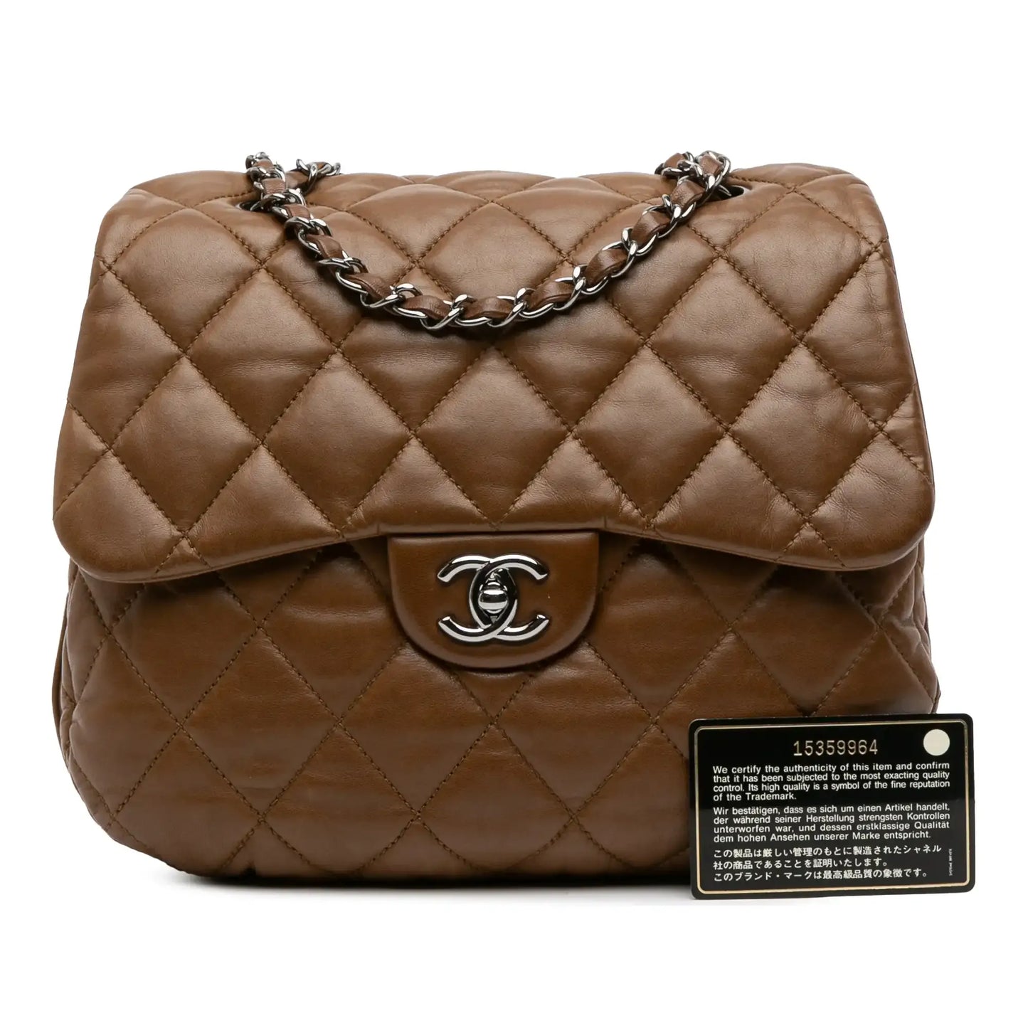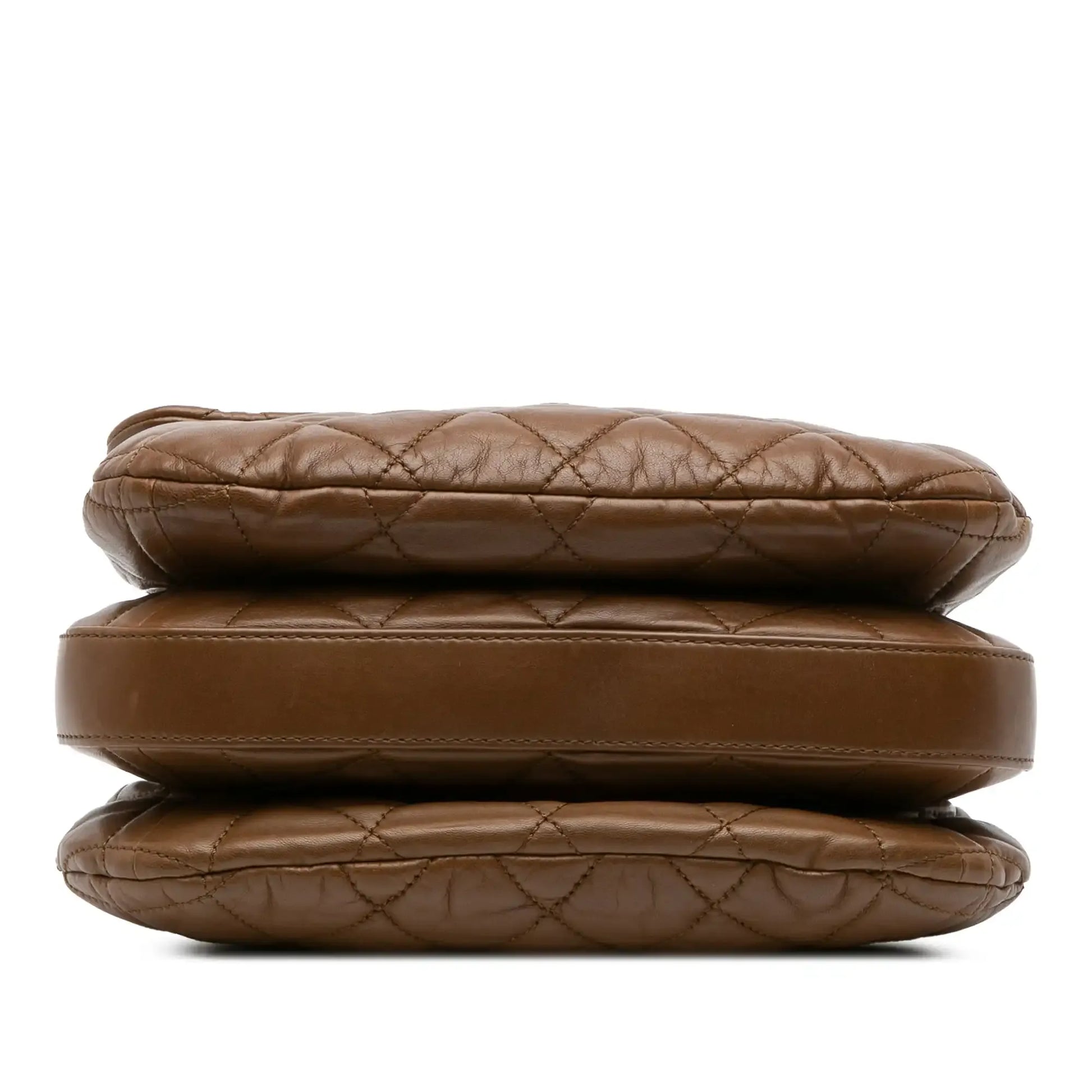 Description | The 3 Flap bag features a quilted lambskin leather body, leather-woven chain straps, a front flap with a CC turn-lock closure, an exterior back slip pocket, three interior compartments, and an interior zip pocket. | ||||||||||||