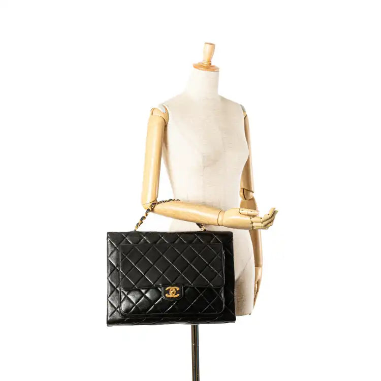 Description | This business bag features a quilted lambskin leather body, leather-woven chain handles, double sided flaps with CC turn lock closure, and interior zip and slip pockets. | ||||||||||||