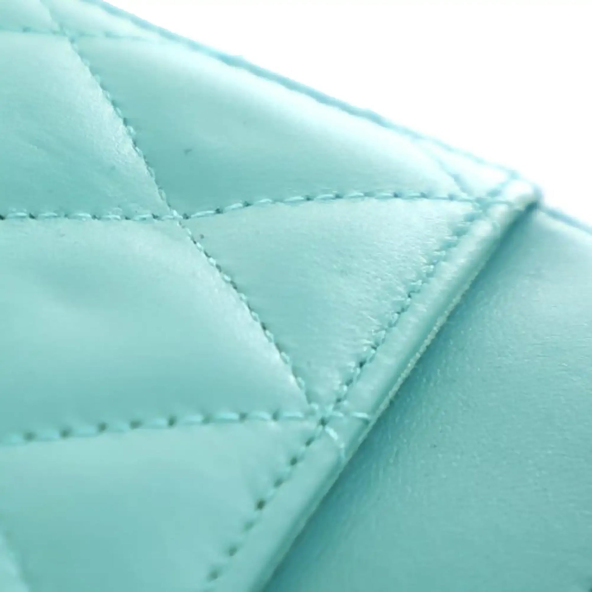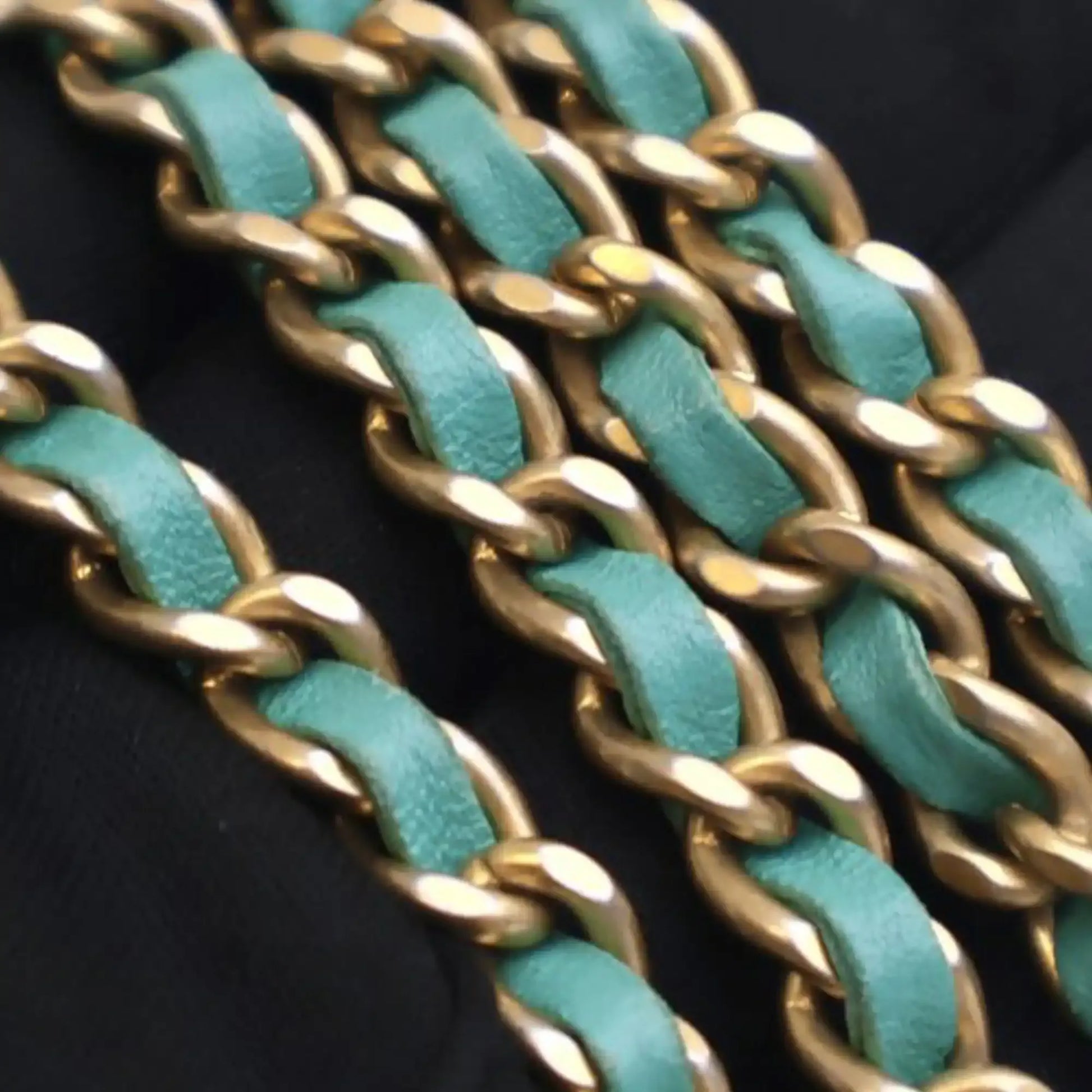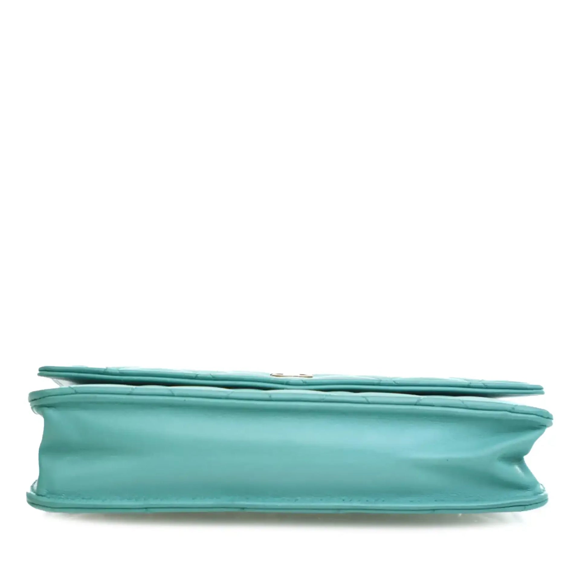 | Description | This wallet on chain features a quilted lambskin leather body, a leather woven chain shoulder strap, a front flap with magnetic closure, an exterior back slip pocket, an interior zip compartment, and interior zip and slip pockets. | ||||||||||||