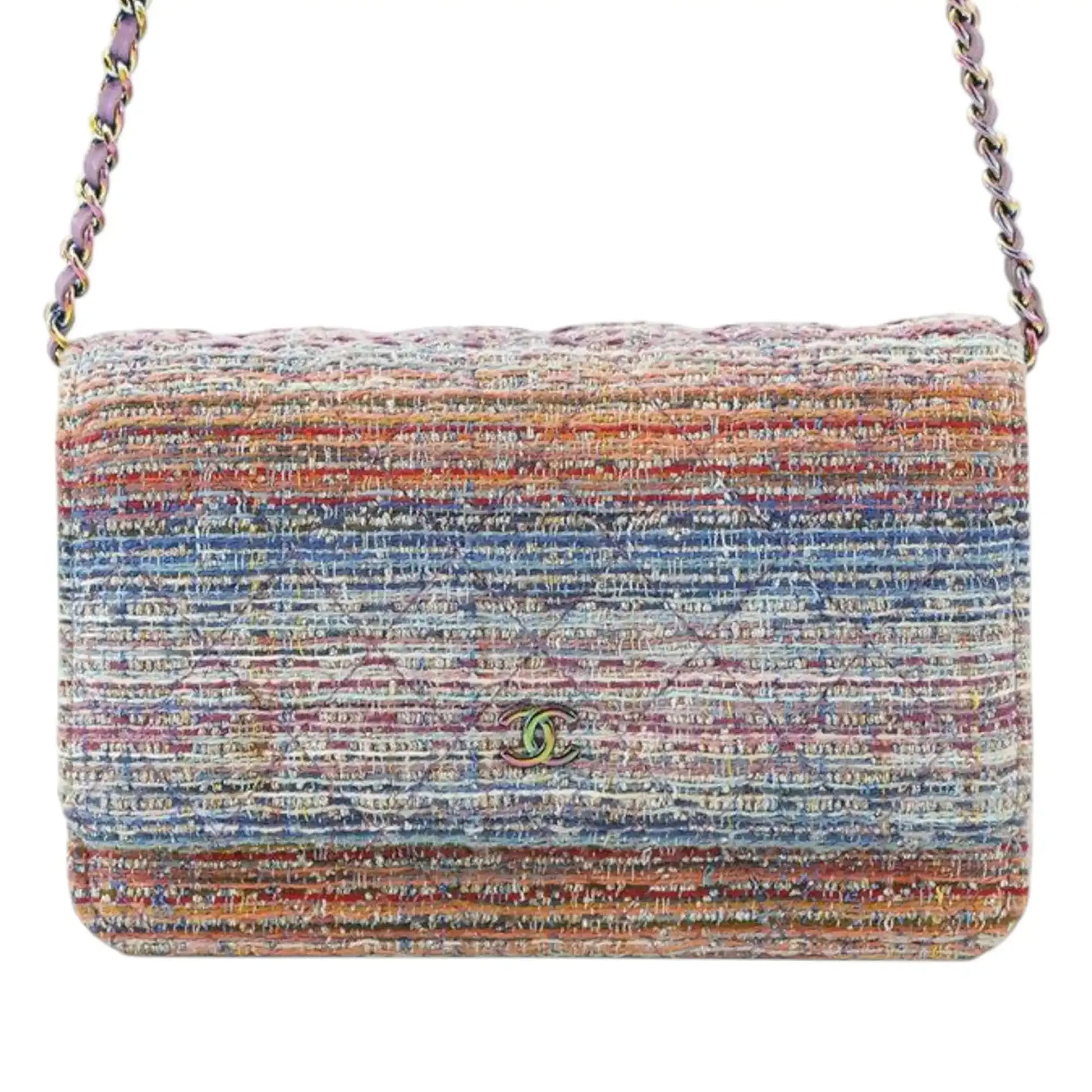 Chanel CC Quilted Tweed Rainbow Hardware Wallet on Chain