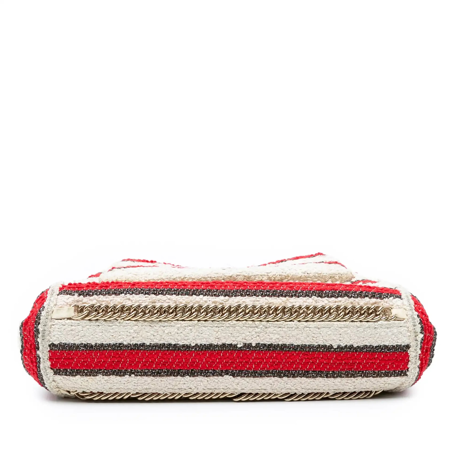 | Description | This shoulder bag features a tweed body, a curb chain link strap, a flap with magnetic snap button closure, and an interior zip pocket. | ||||||||||||