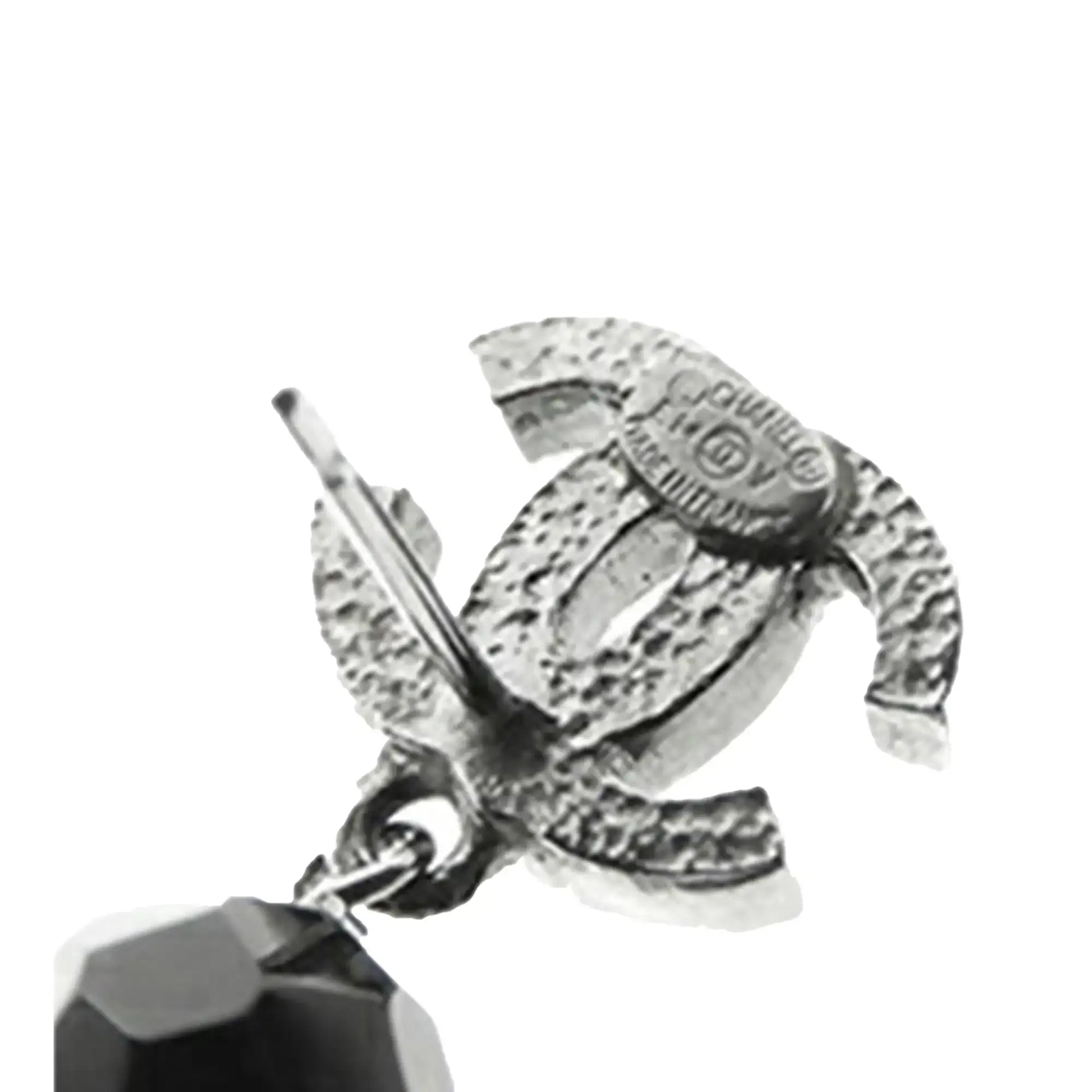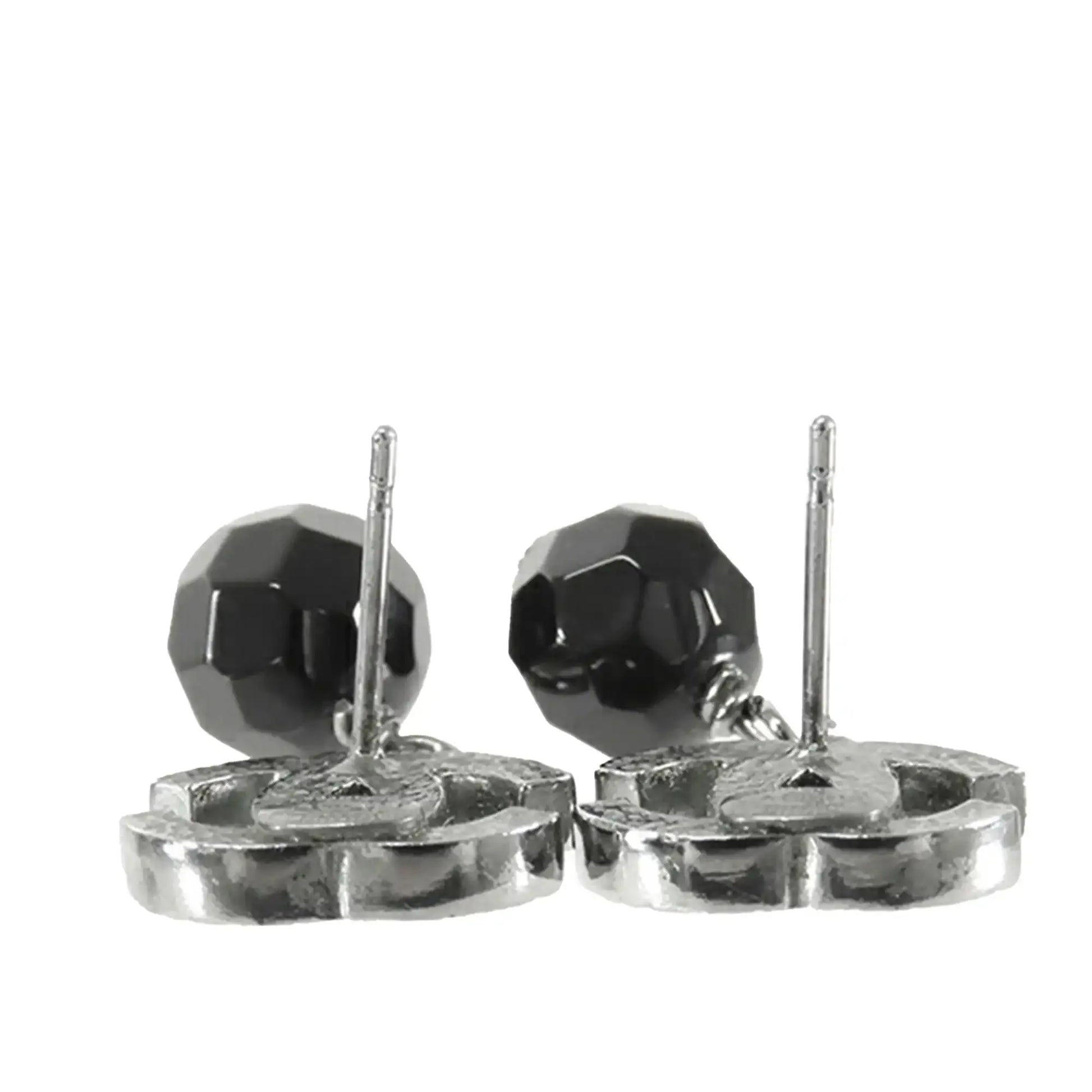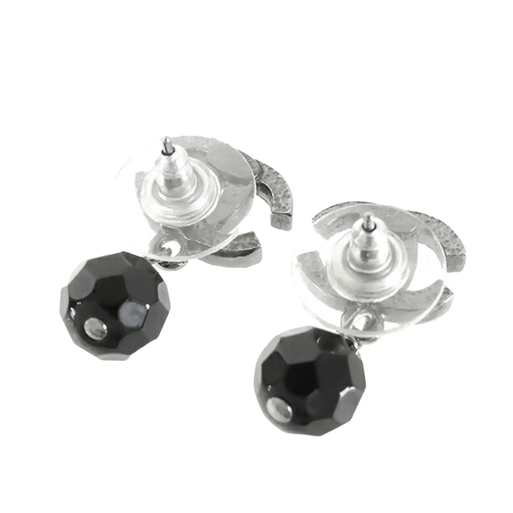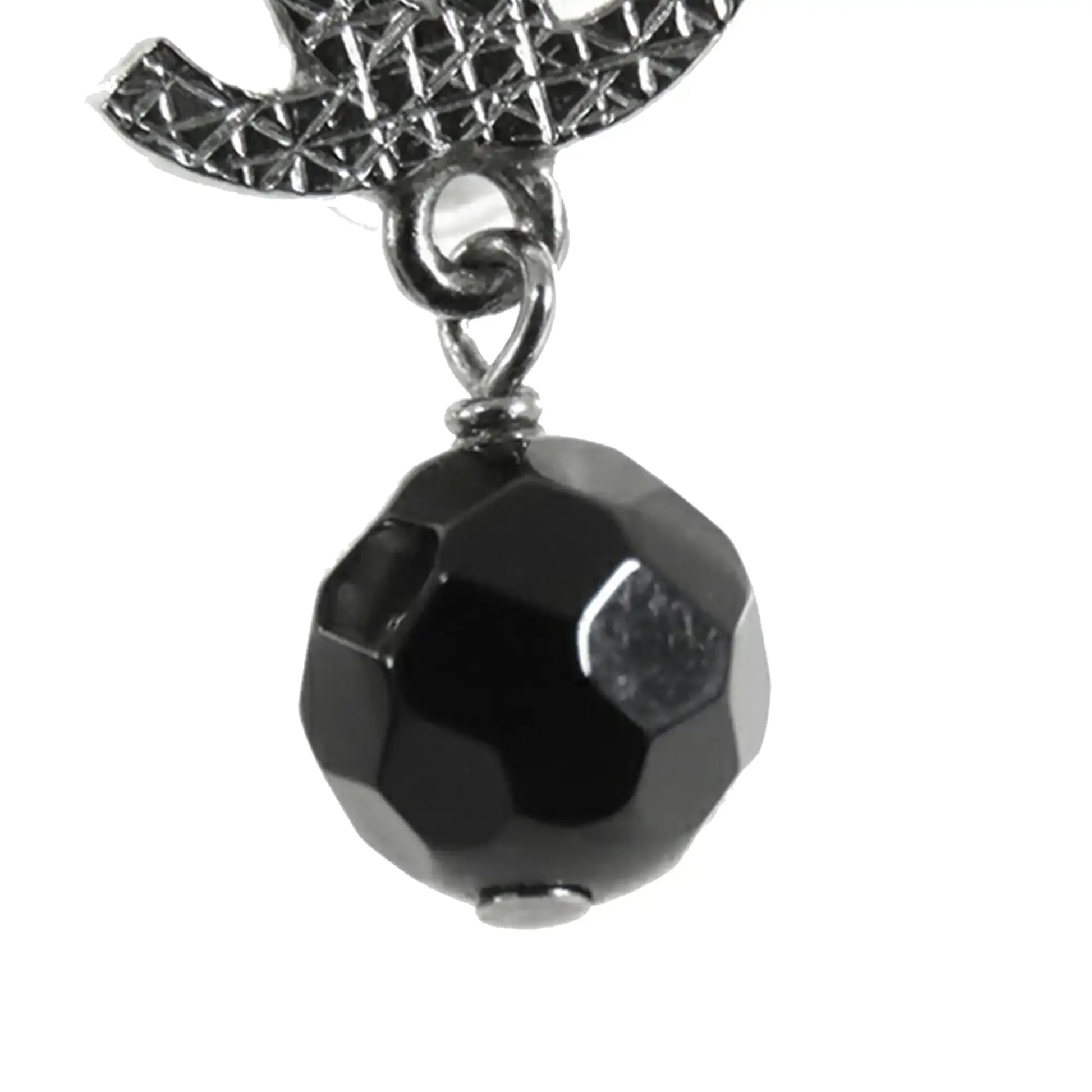 Chanel CC Silver Plated Bead Drop Push Back Earrings