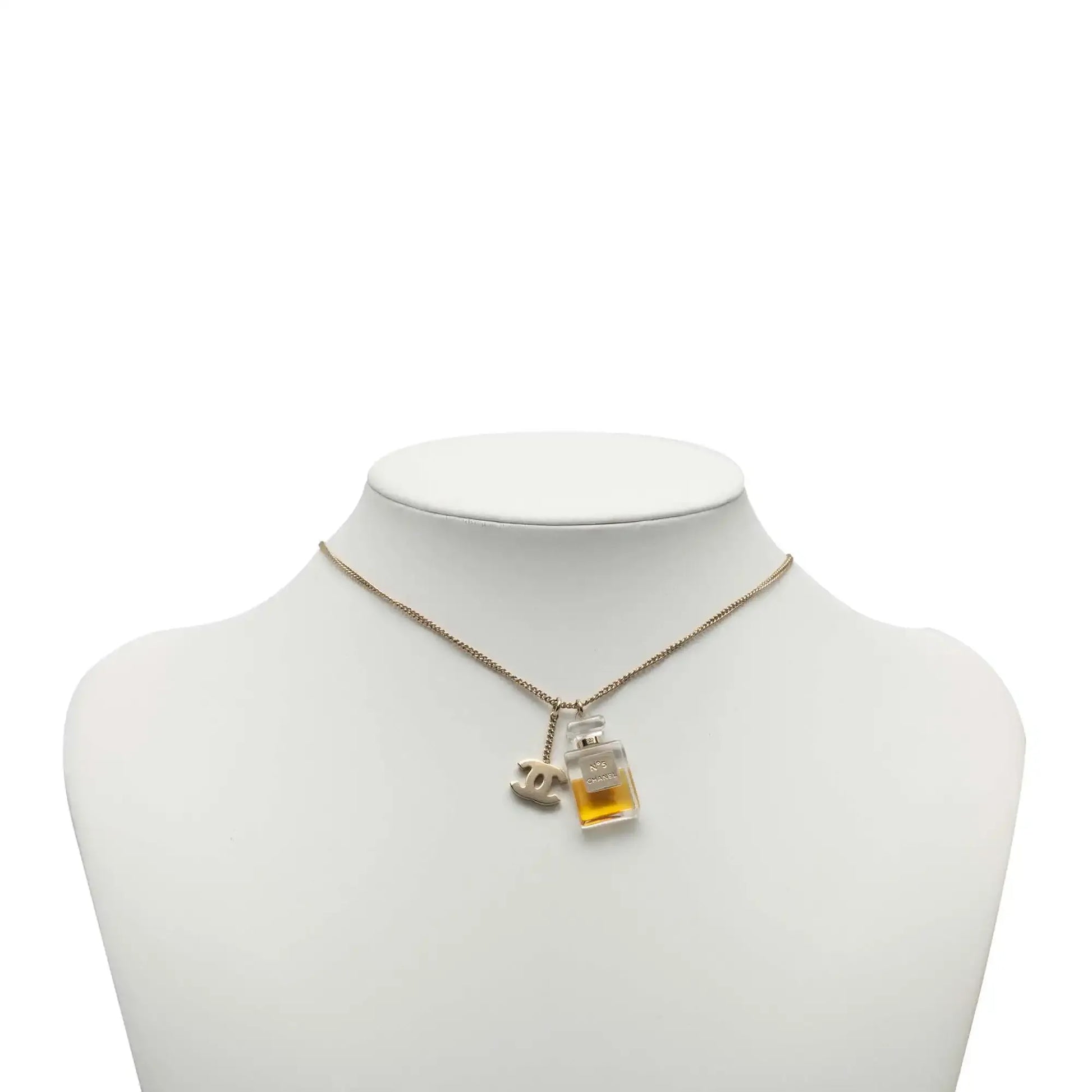 Chanel Gold Plated CC No.5 Perfume Bottle Pendant Necklace