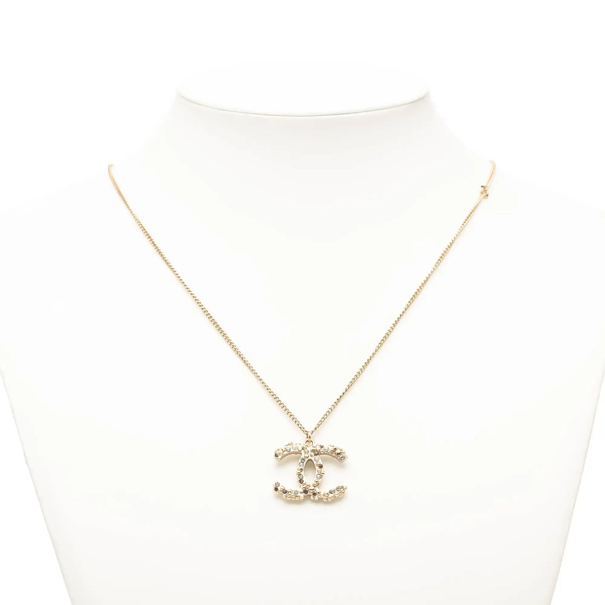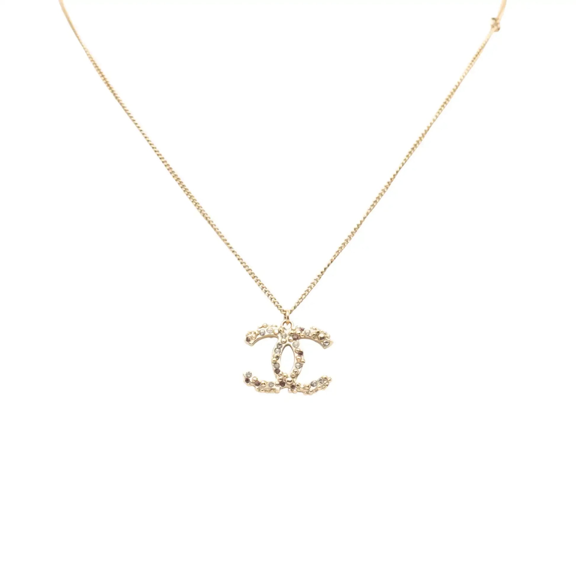 Chanel Gold Plated CC Rhinestones Pendant Necklace
