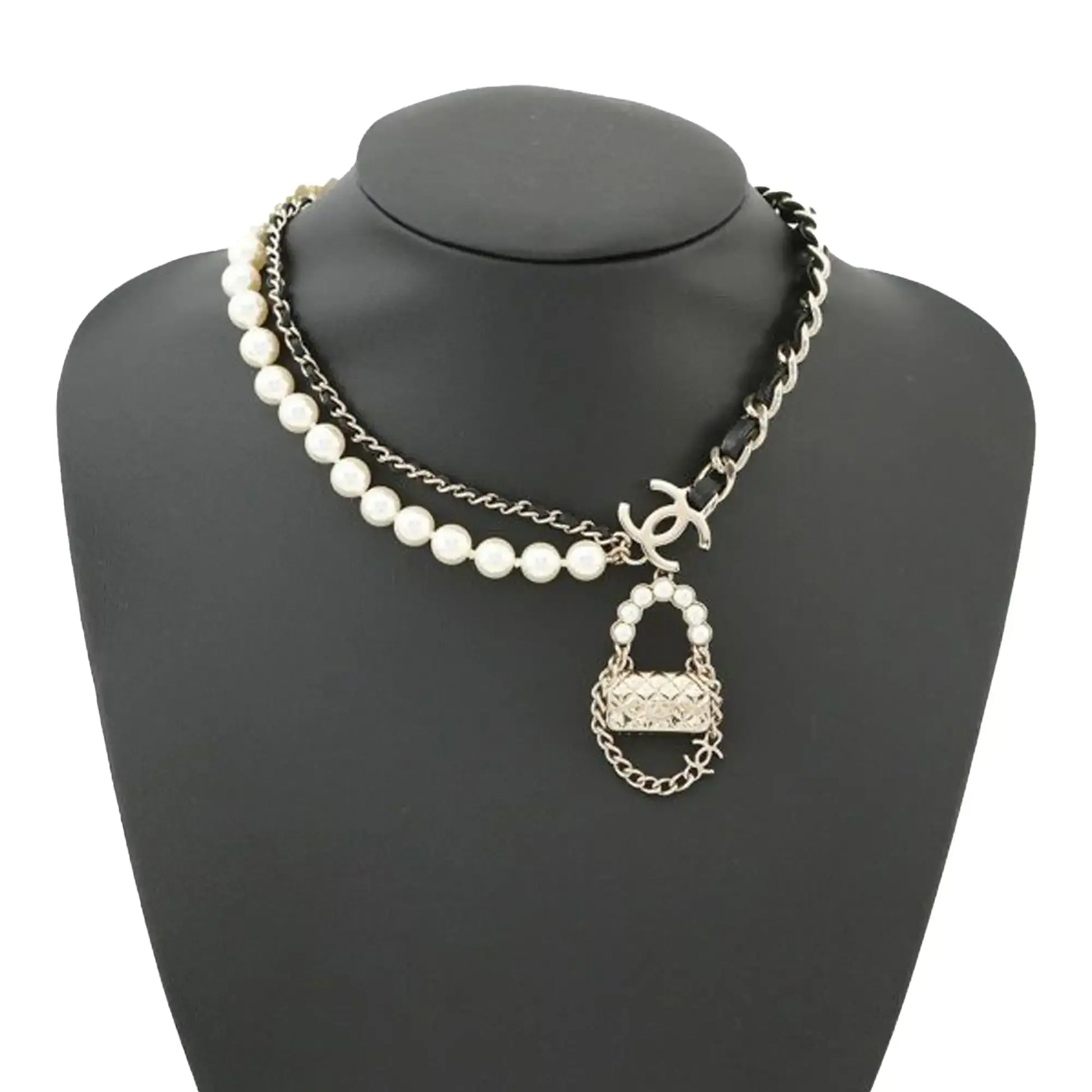 Chanel Gold Plated Chain And Faux Pearl Flap Bag Pendant Necklace