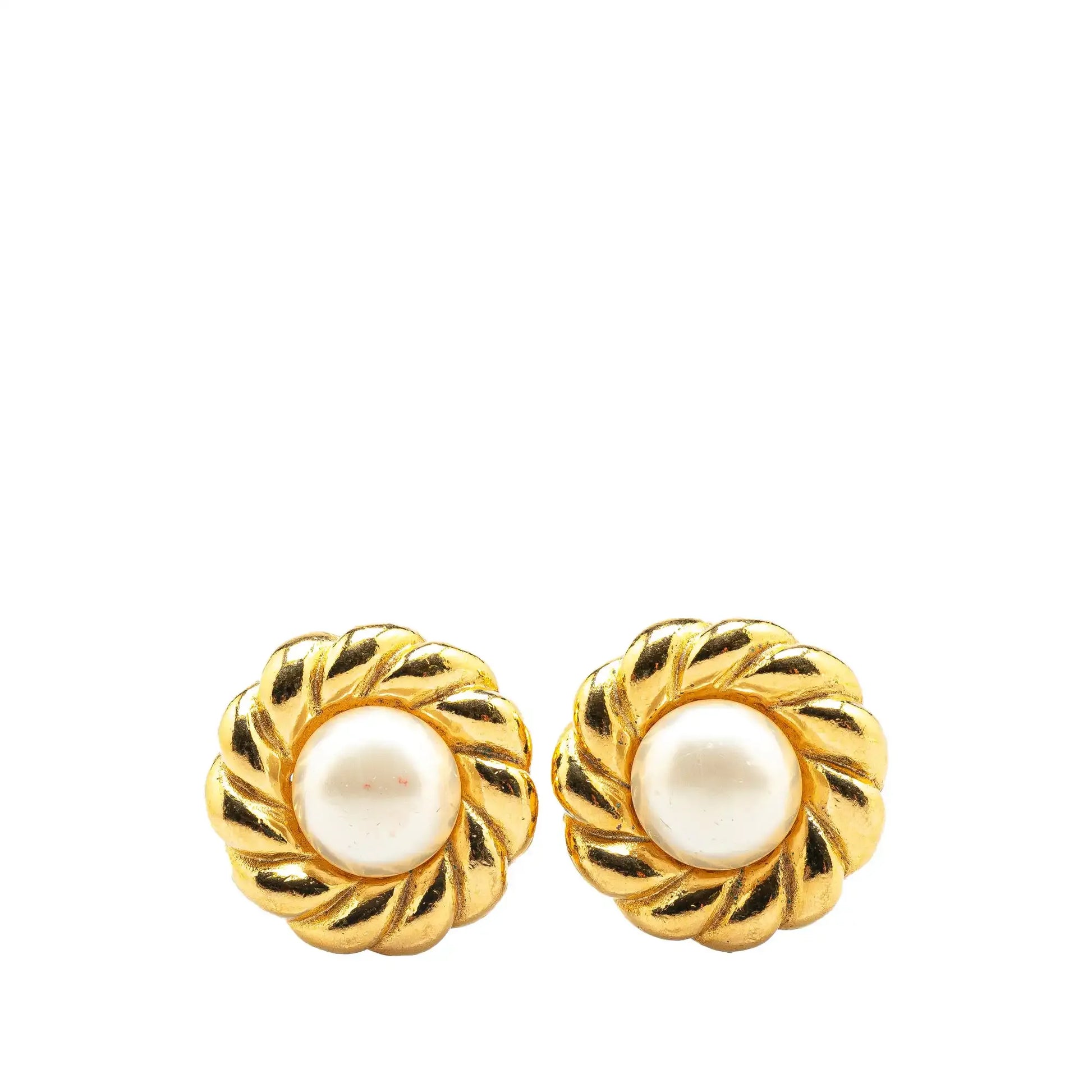 Chanel Gold Plated Faux Pearl Clip on Earrings