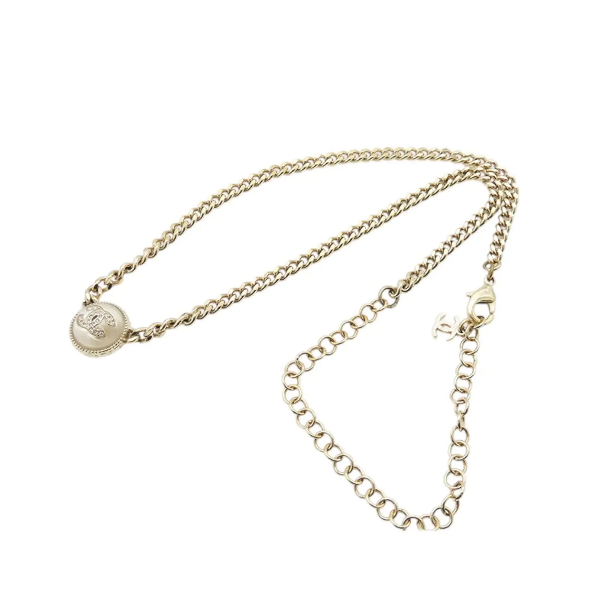 Chanel Gold Plated Resin CC Rhinestones Pendant Necklace