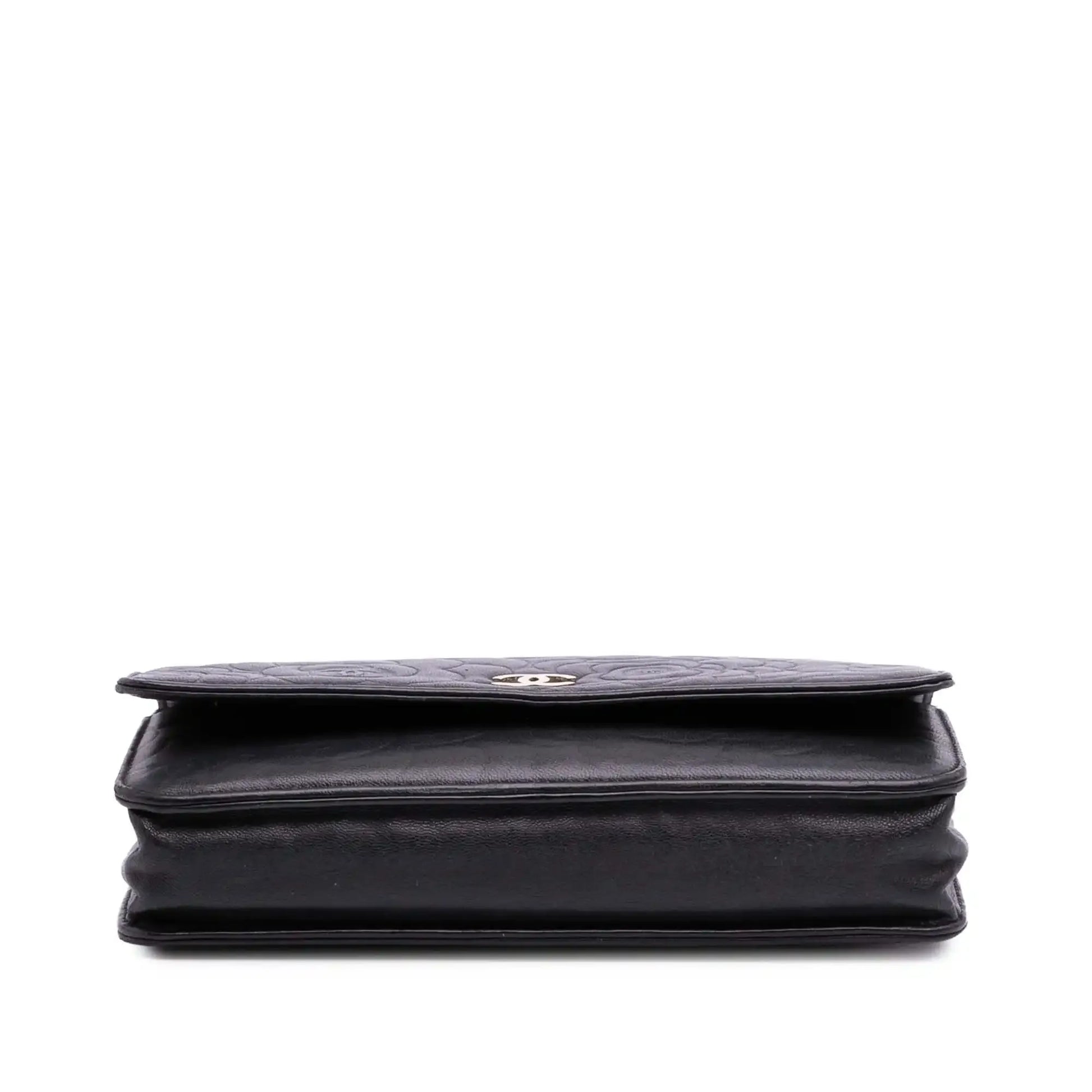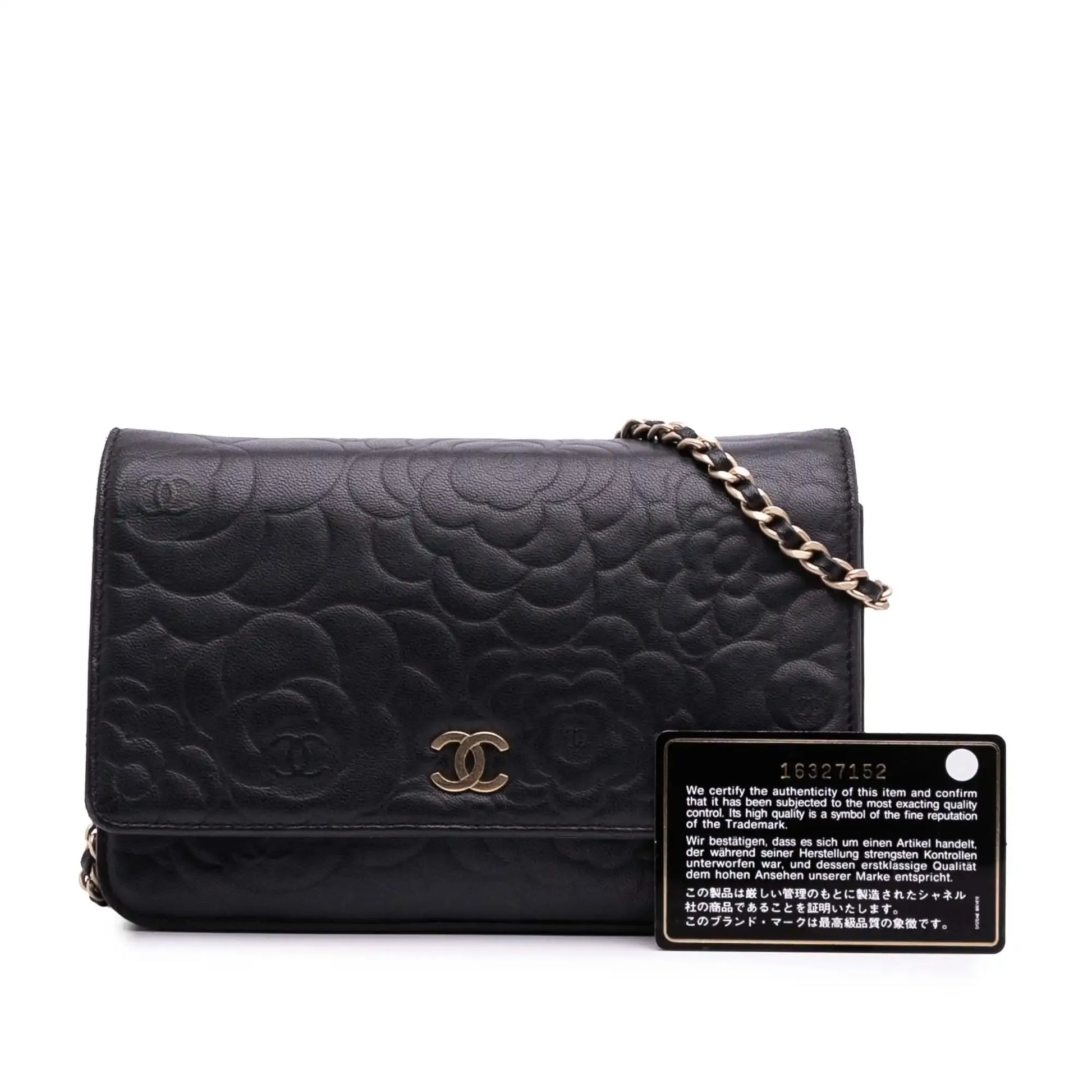 Chanel Lambskin Camellia Embossed Wallet On Chain