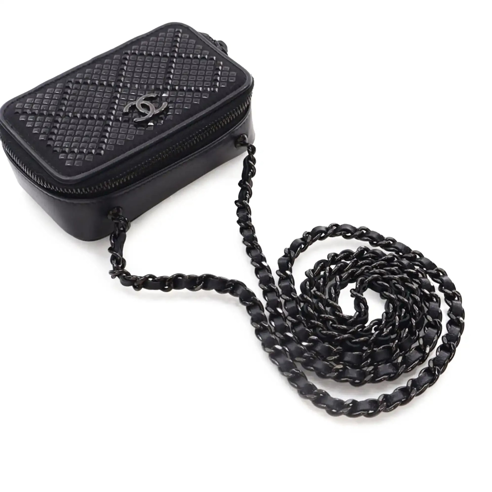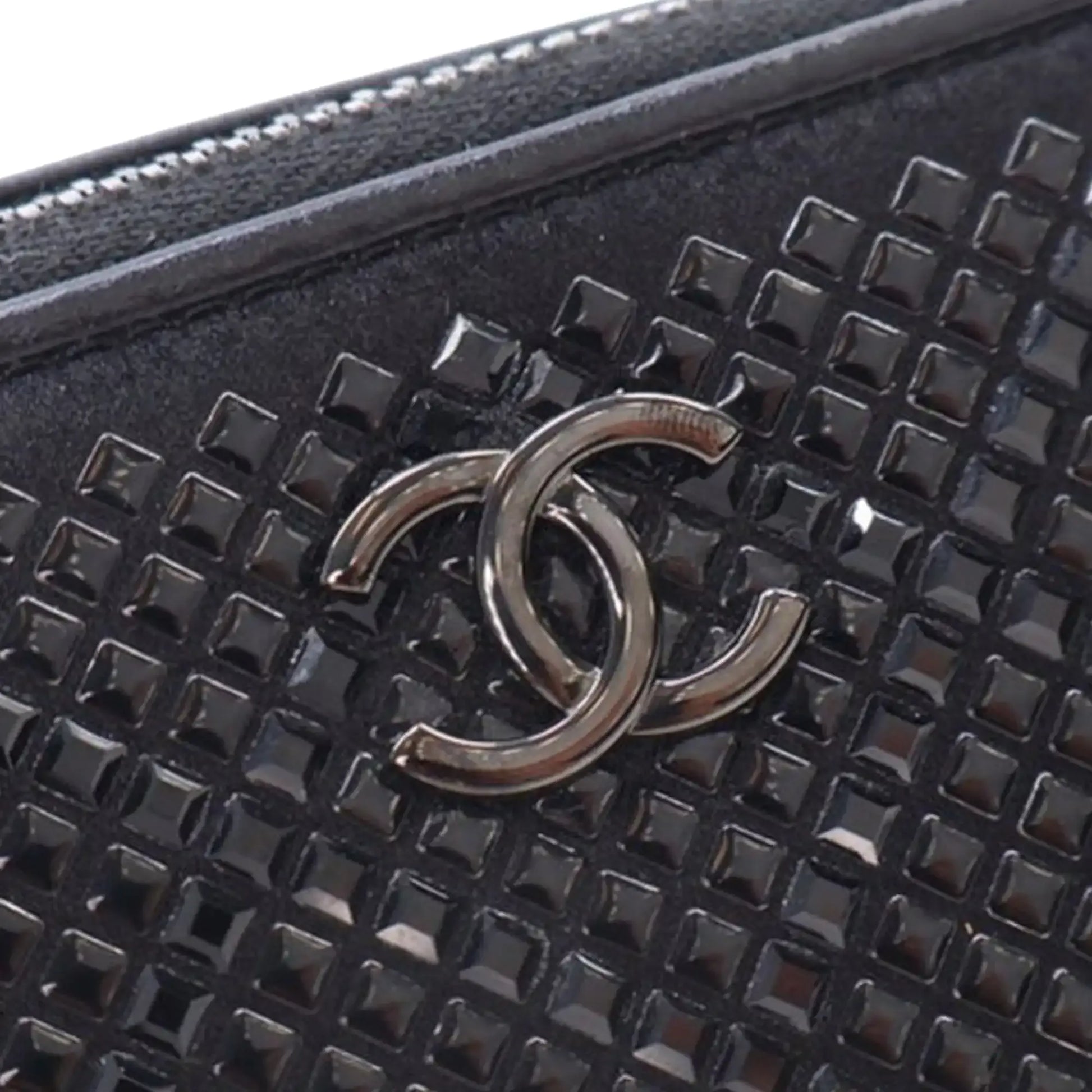 Chanel Lambskin Satin Strass Studded Clutch with Chain