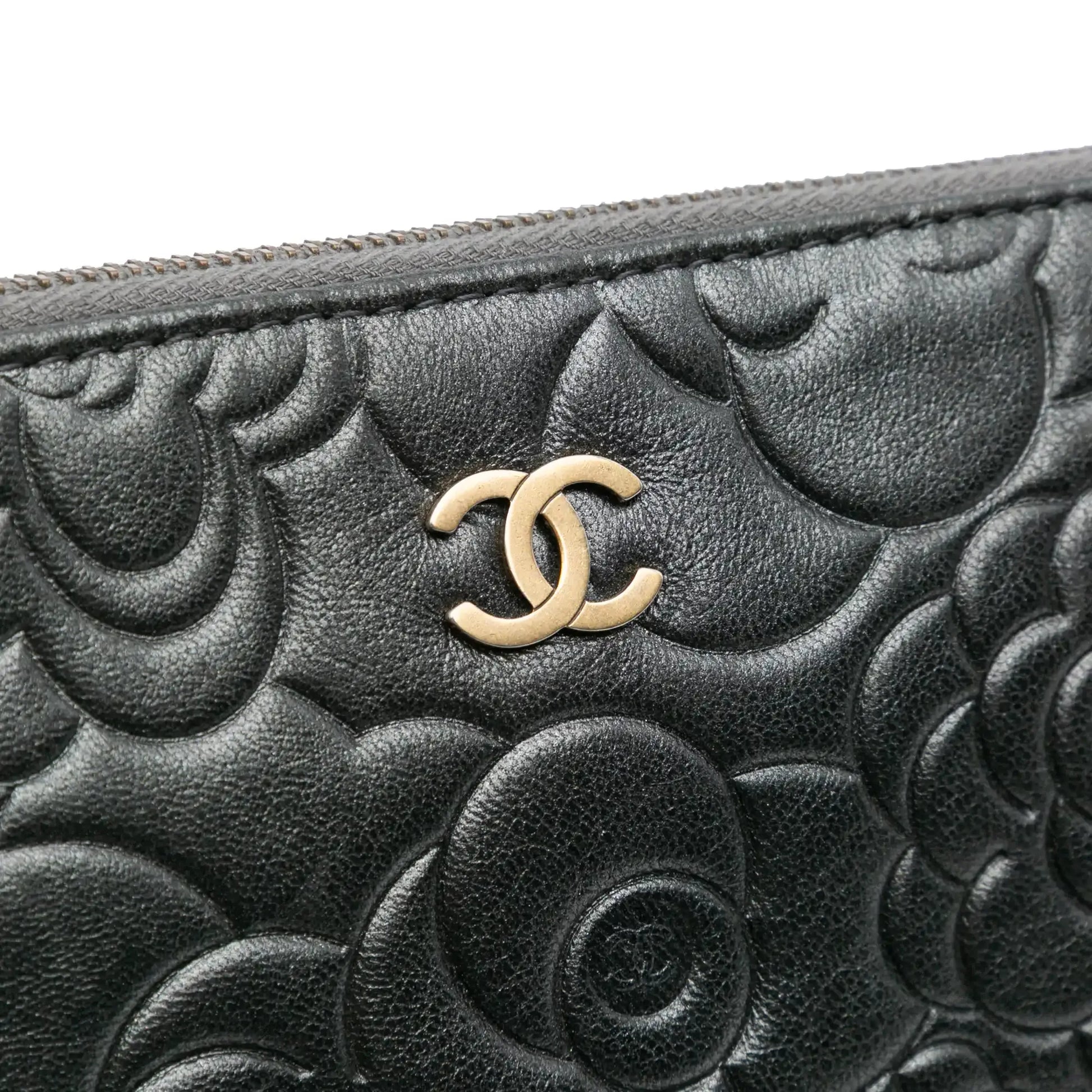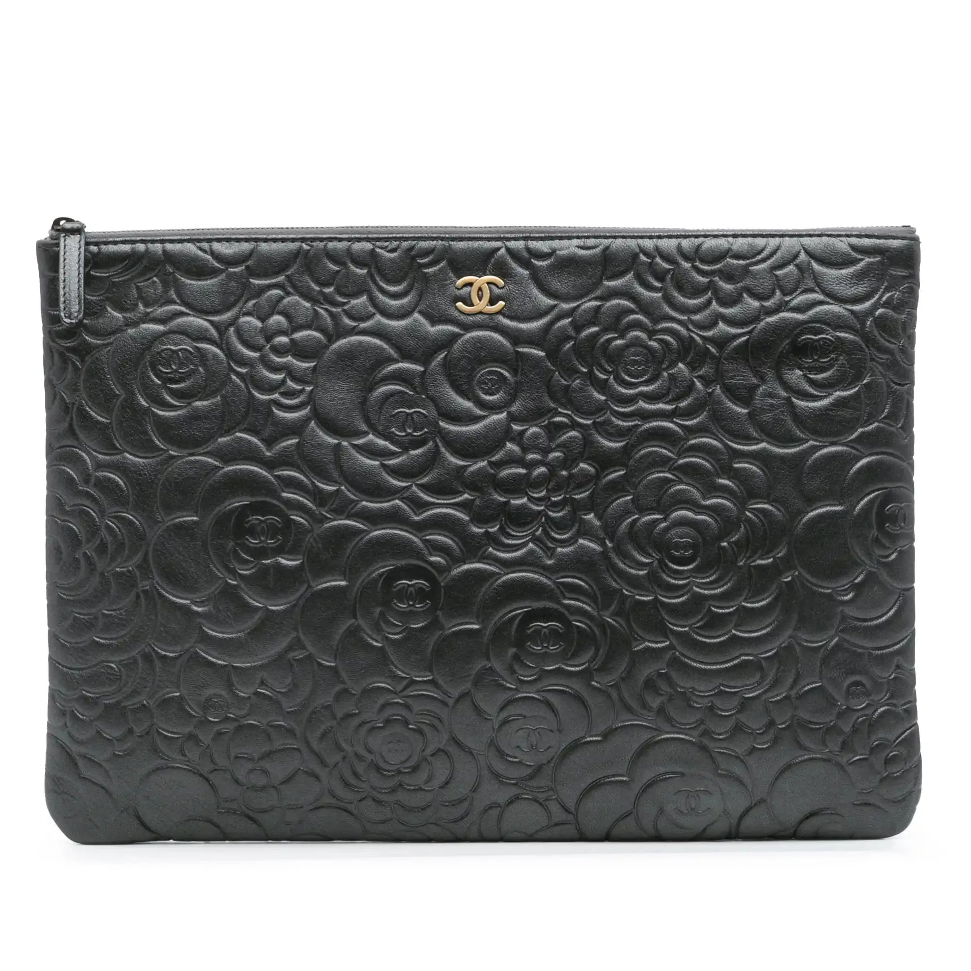 Chanel Large CC Embossed Lambskin Camellia O Case Clutch