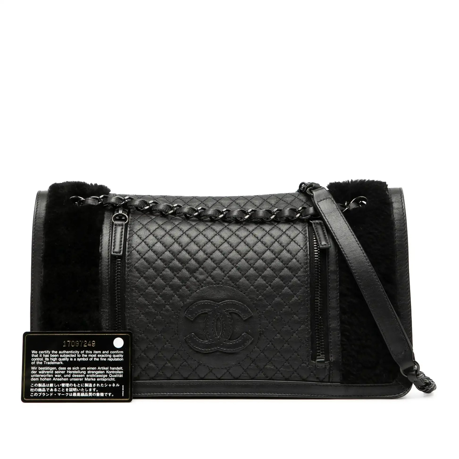 Chanel Large CC Quilted Lambskin and Shearling Single Flap