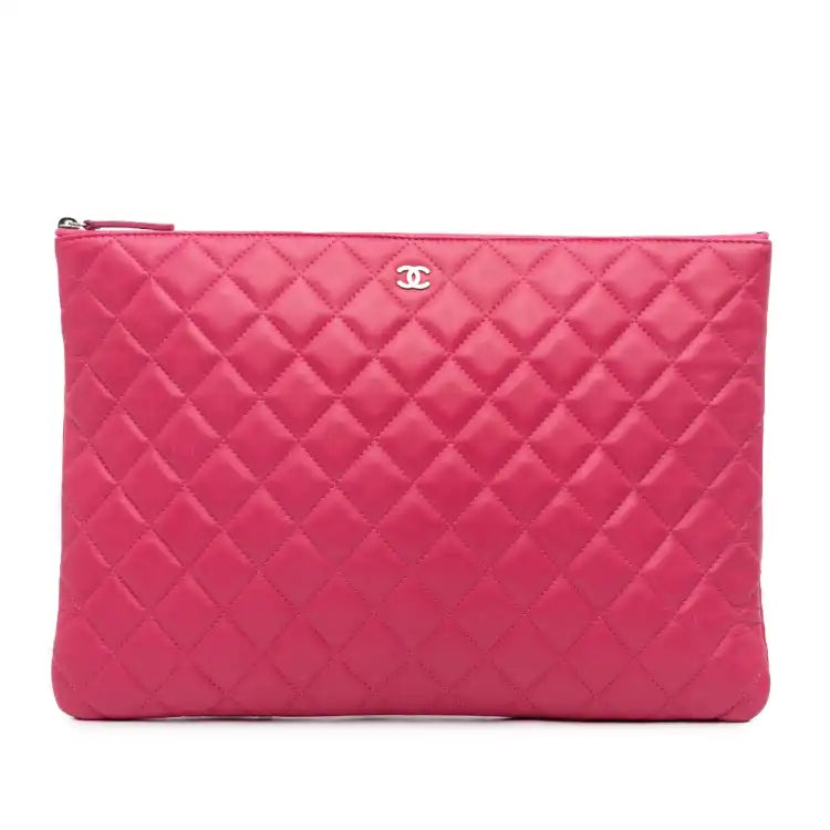 Description | This clutch bag features a quilted lambskin leather body and a top zip closure. | ||||||||||||
