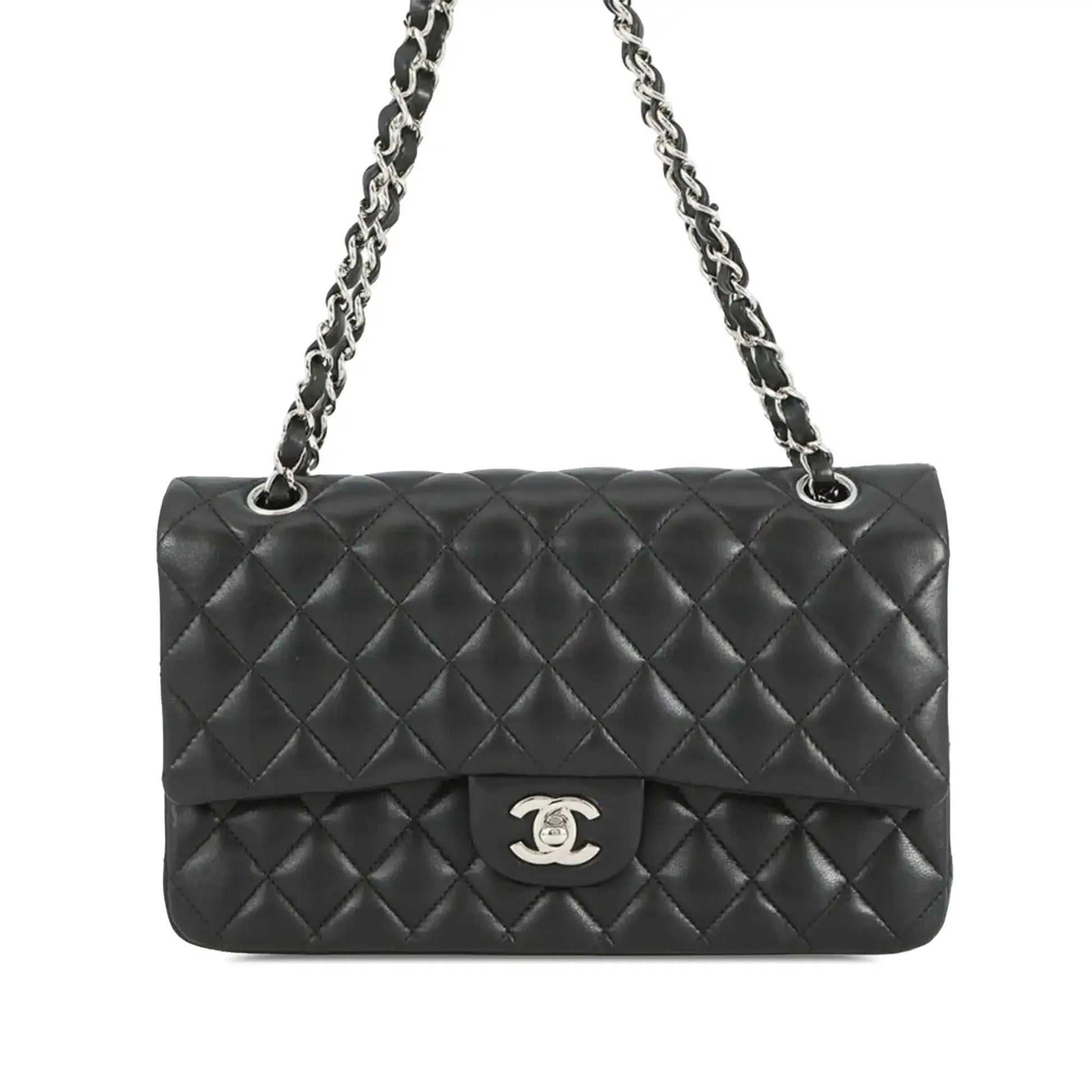 | Description | This shoulder bag features a quilted lambskin body, leather woven chain straps, double front flaps with interlocking Cs and a twist lock closure, an exterior back slip pocket, and interior zip and slip pockets. | ||||||||||||