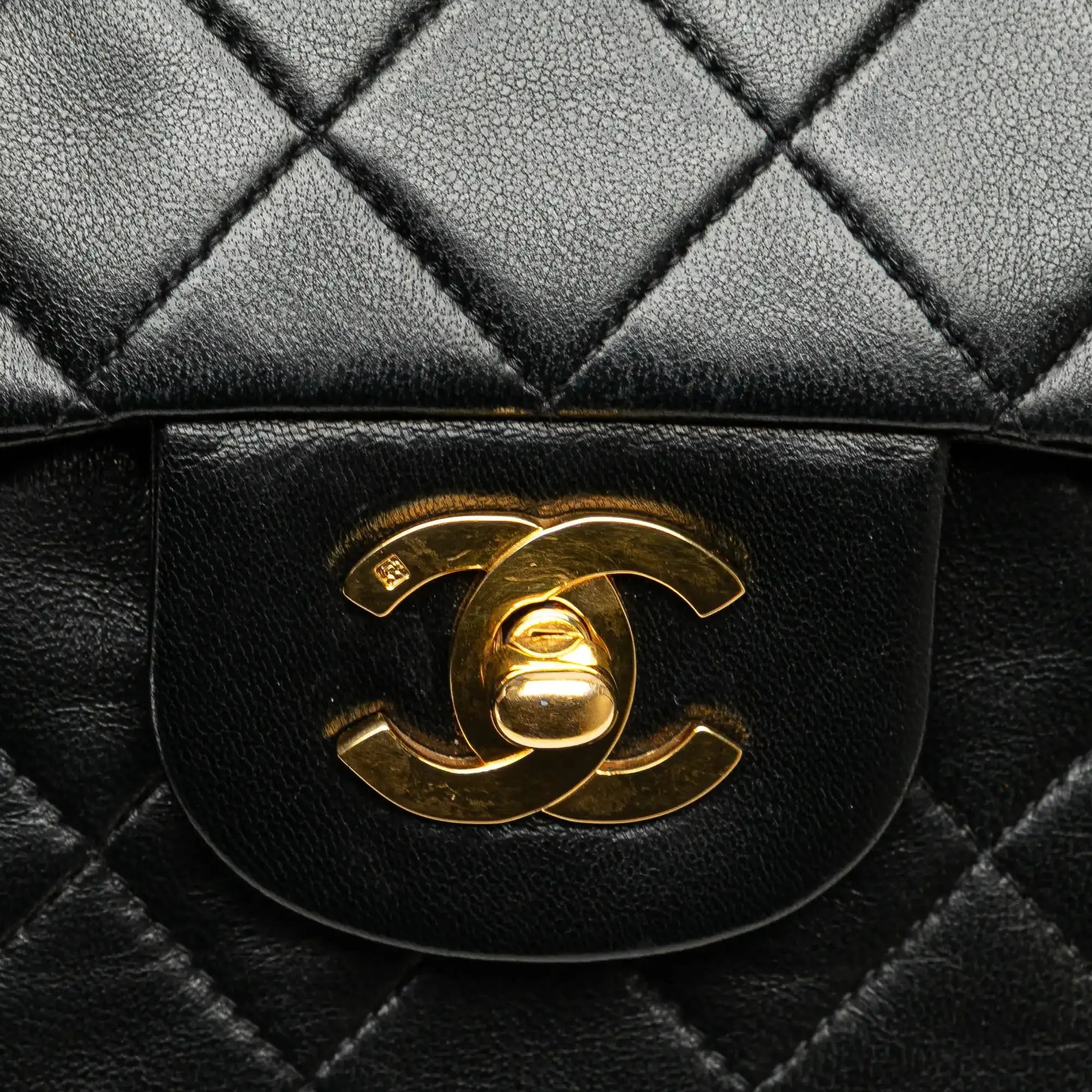 Description | This shoulder bag features a quilted lambskin body, an exterior back slip pocket, leather woven chain straps, double front flaps with interlocking Cs and a twist lock closure, and interior slip pockets. | ||||||||||||