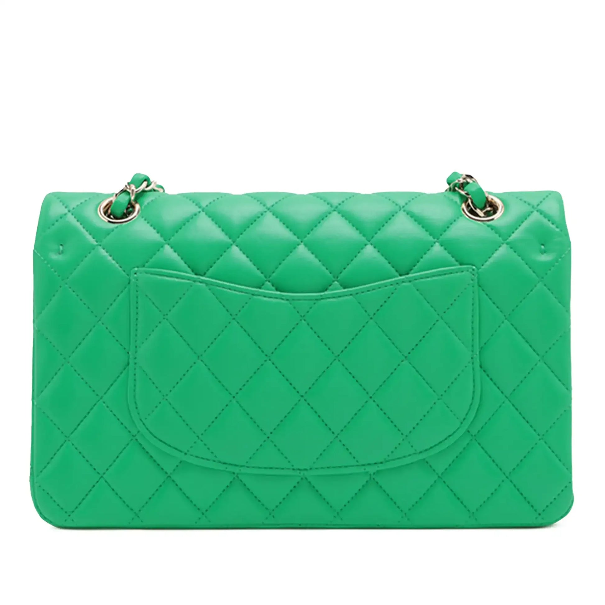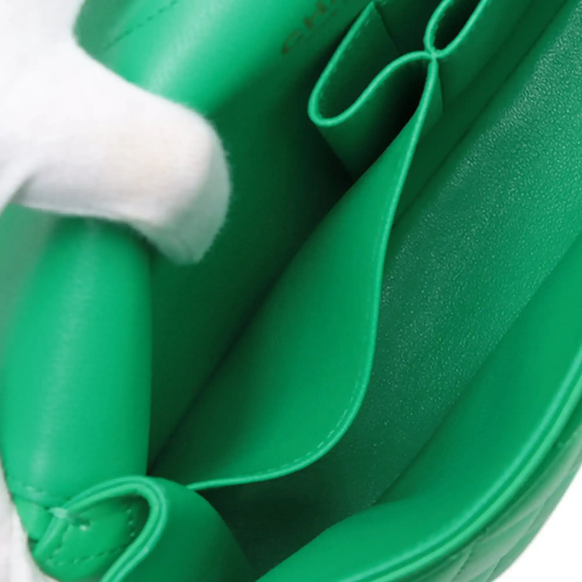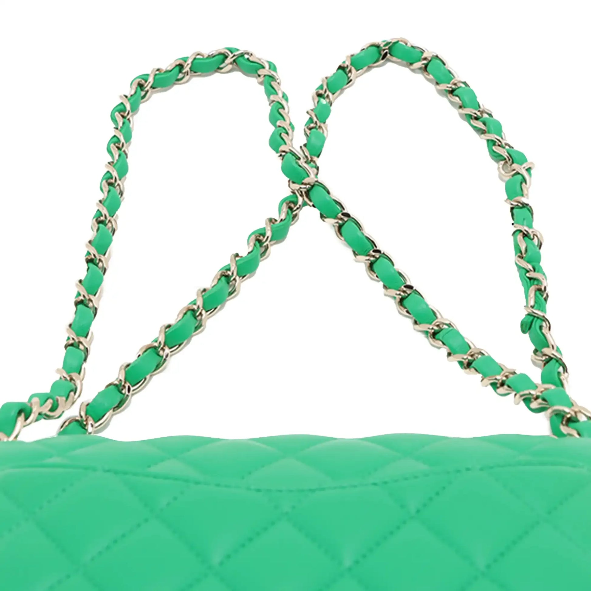 | Description | This shoulder bag features a quilted lambskin leather body, a silver-tone leather woven chain link straps, double front flaps with interlocking Cs and a twist lock closure, an exterior back slip pocket, and interior zip and slip pockets. | ||||||||||||