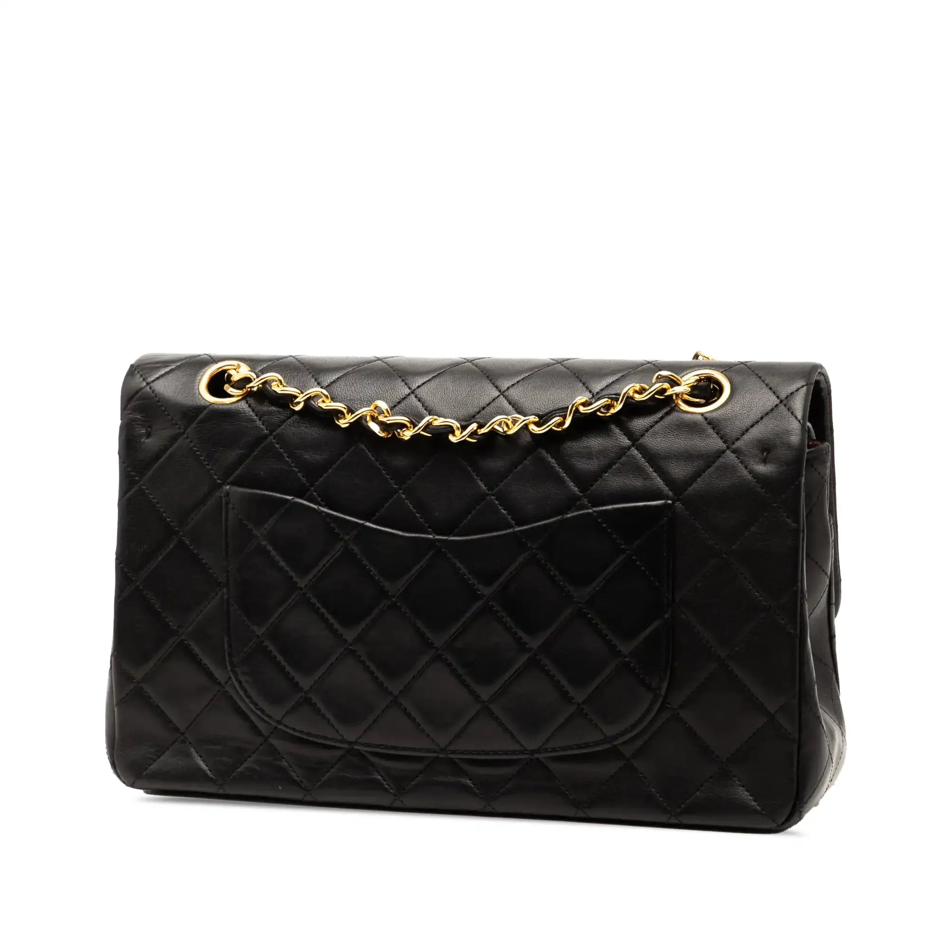 | Description | This shoulder bag features a quilted lambskin body, leather woven chain straps, double front flaps with interlocking Cs and a twist lock closure, an exterior back slip pocket, and interior zip and slip pockets. | ||||||||||||