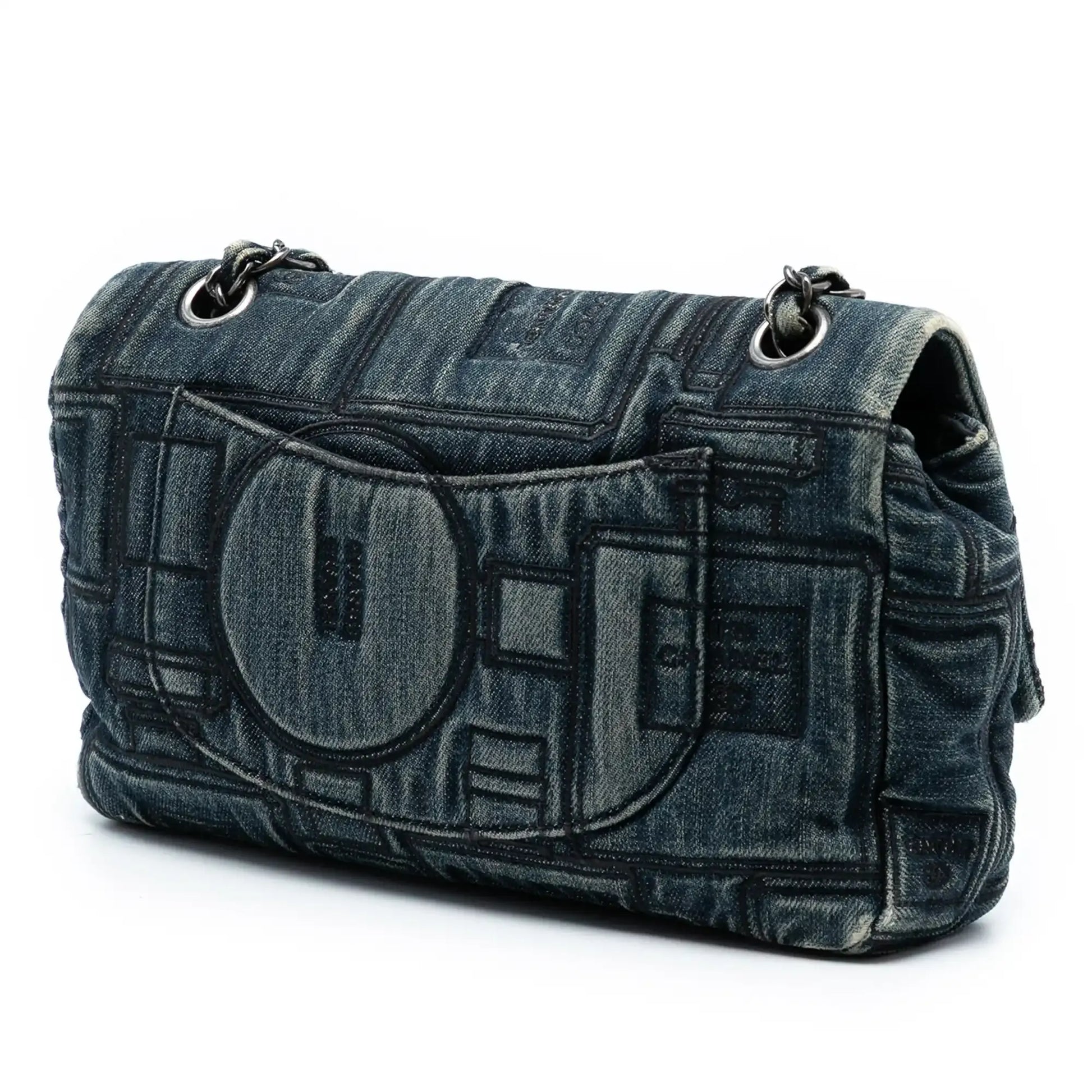Chanel Medium Embroidered Denim Perfume Bottle Single Flap