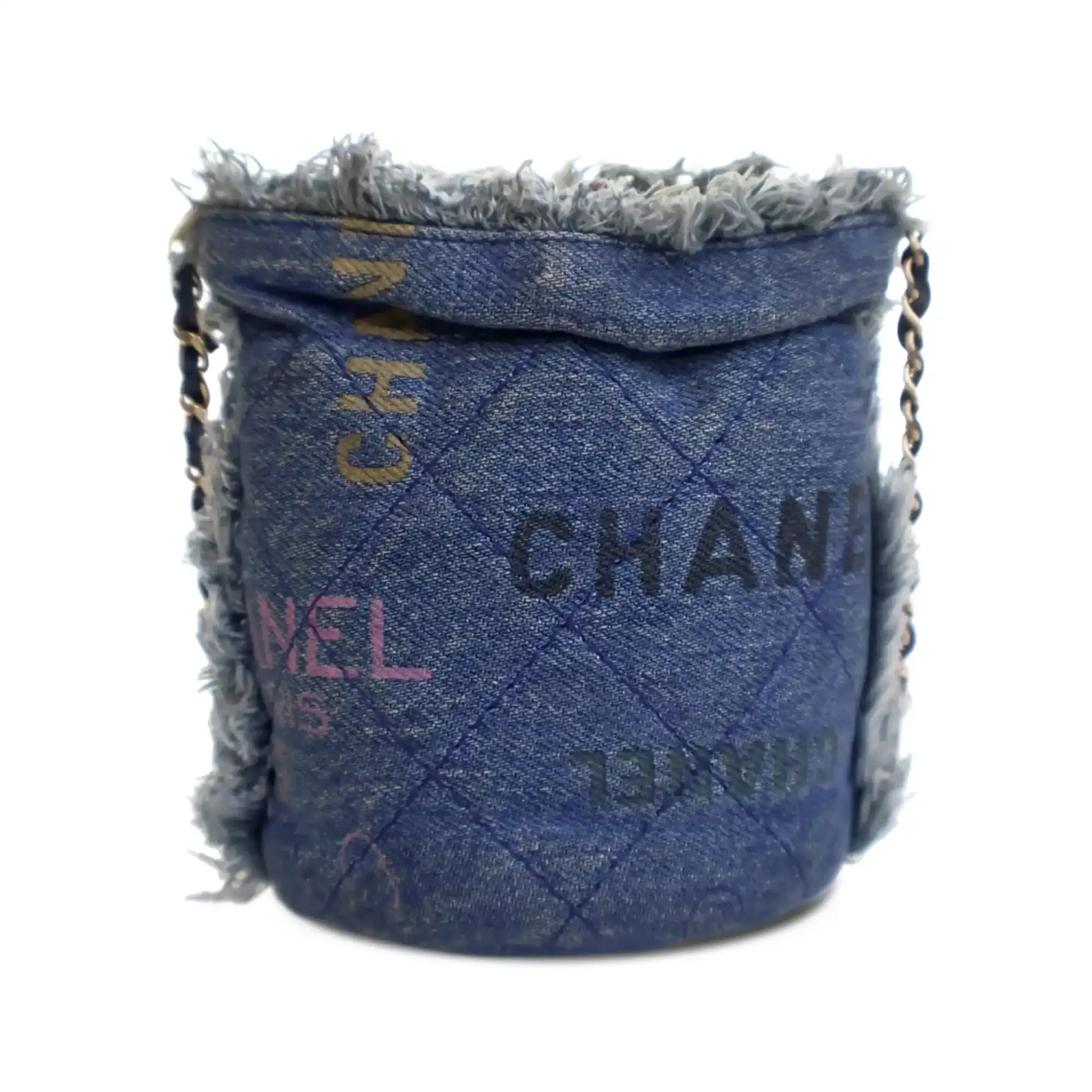 Description | This bucket bag features a quilted denim body, a chain link shoulder strap, and a drawstring chain link with CC embellishment closure. | ||||||||||||