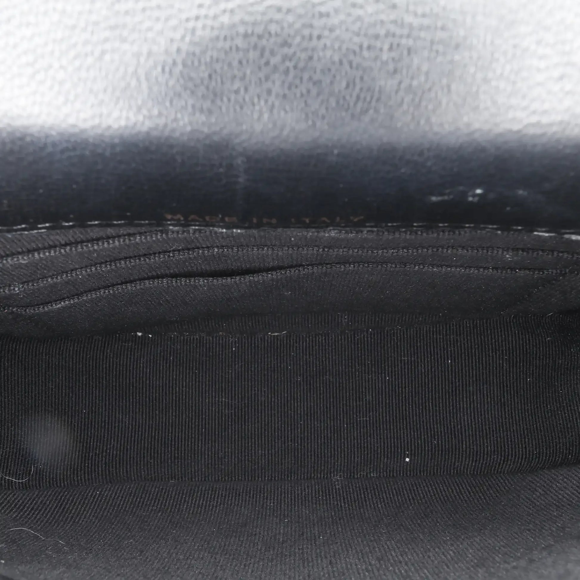 | Description | This crossbody bag features a calf leather body, a leather woven chain link strap, a front flap with snap button closure, an exterior back slip pocket, and an interior slip pocket. | ||||||||||||