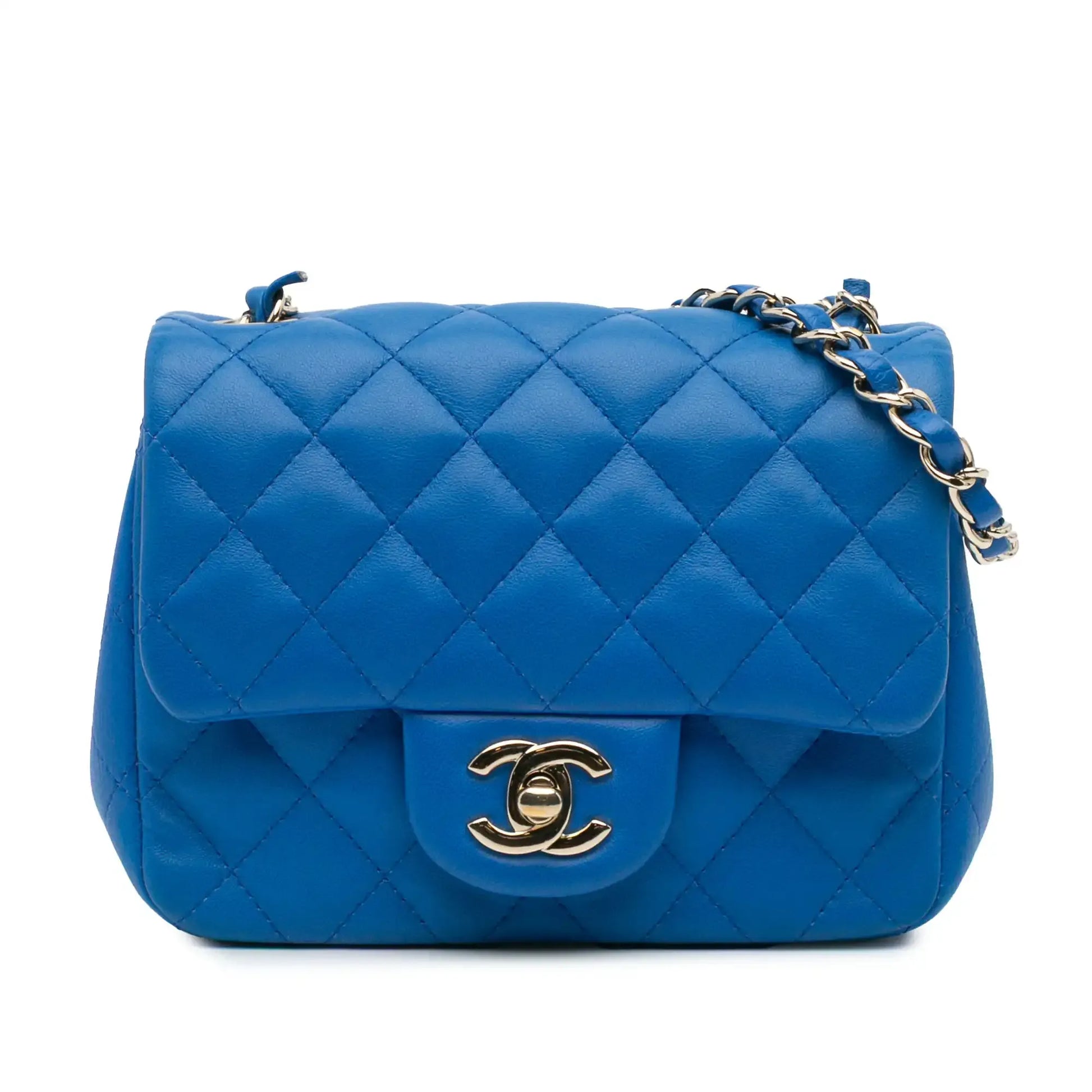 Description | The Square Flap features a lambskin leather body, a leather woven chain shoulder strap, a front flap with turnlock closure, an exterior back slip pocket, and interior zip and slip pockets. | ||||||||||||