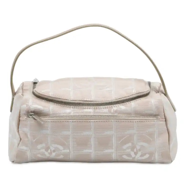 Description | This vanity bag features a nylon body, a flat leather handle, a top zip closure, and an interior zip pocket. | ||||||||||||