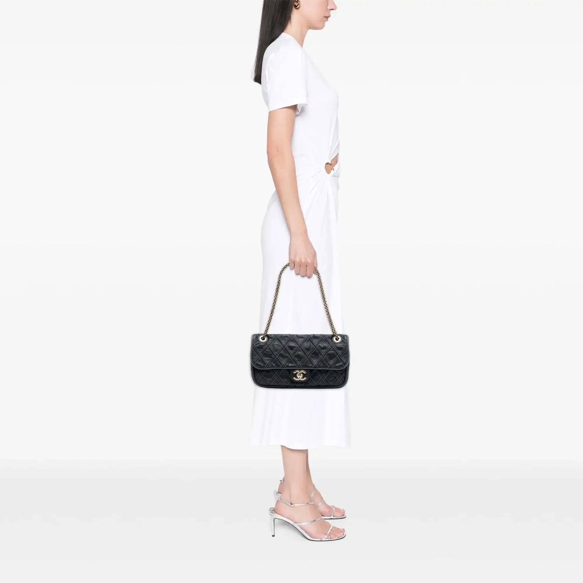 | Description | This shoulder bag features a quilted leather body, a gold-tone chain strap, a flap with CC turn-lock closure, and an interior zip pocket. | ||||||||||||