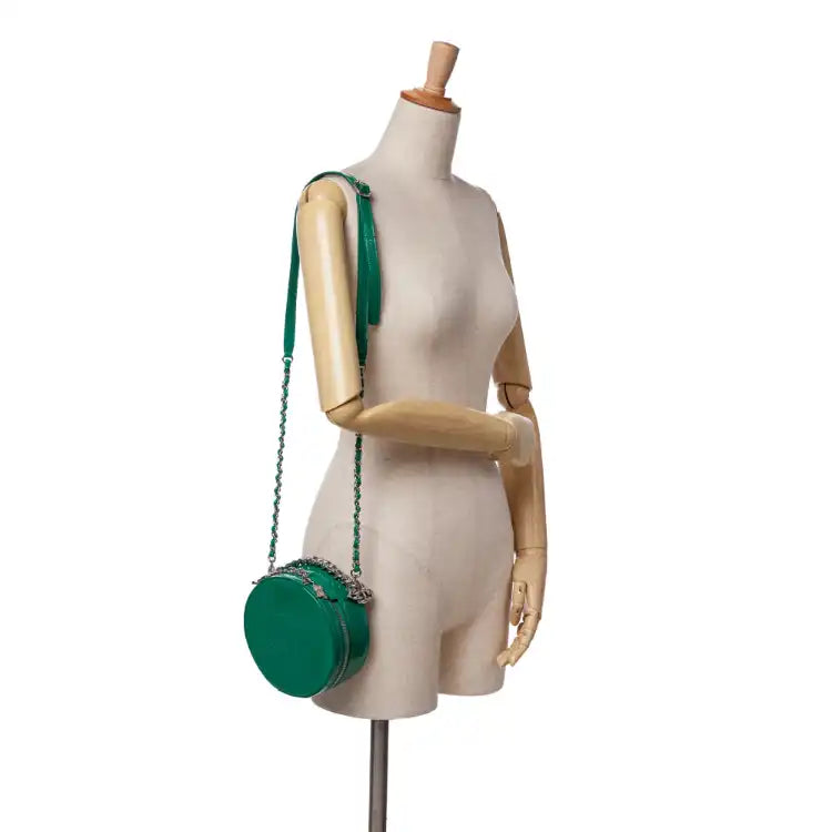 Description | This satchel features a patent leather body, a chain link handle, a leather woven chain-link shoulder strap, a zip-around closure, and an interior slip pocket. | ||||||||||||