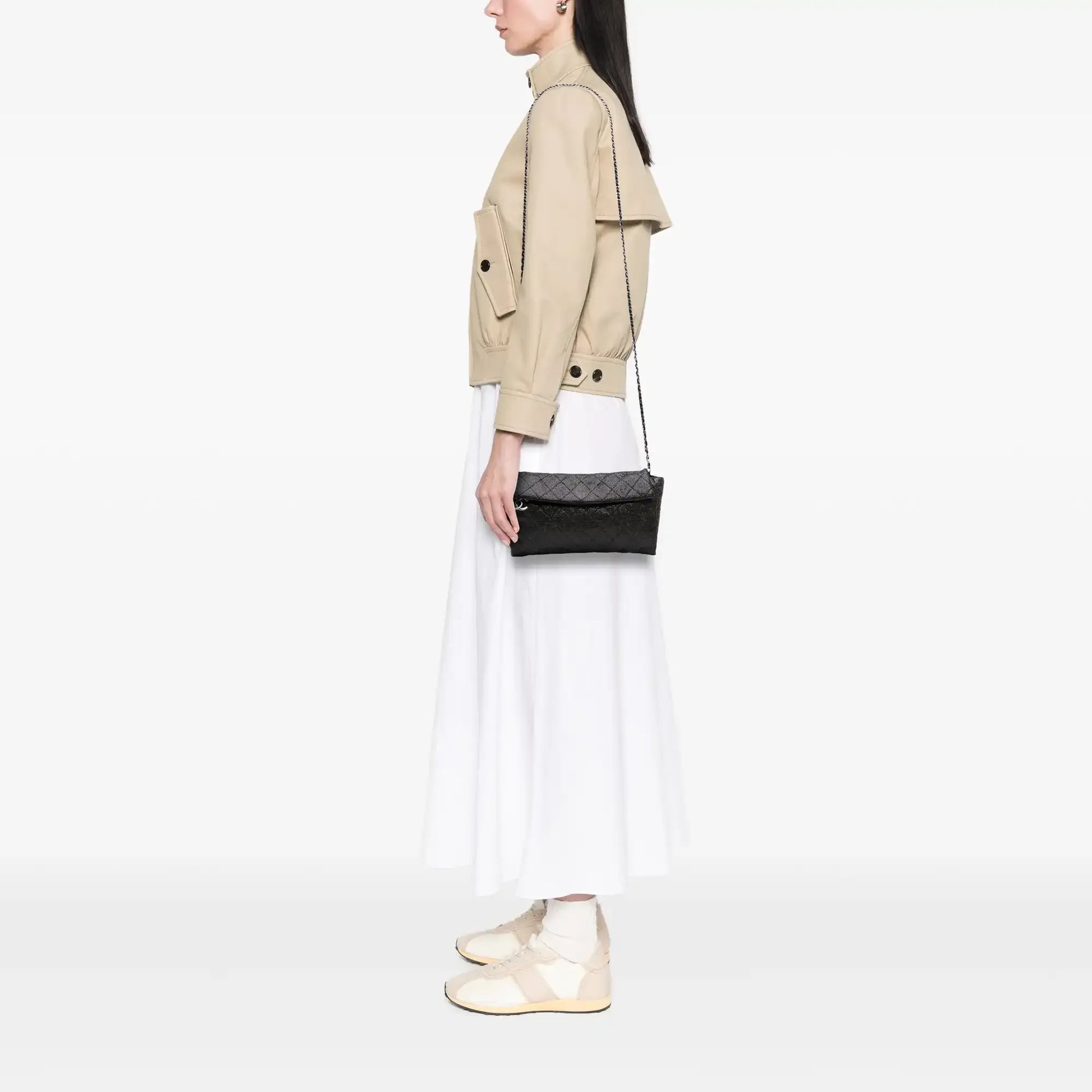 | Description | This crossbody bag features a laminated fabric body, a leather woven chain strap, a front flap, a top zip closure, and interior slip pockets. | ||||||||||||