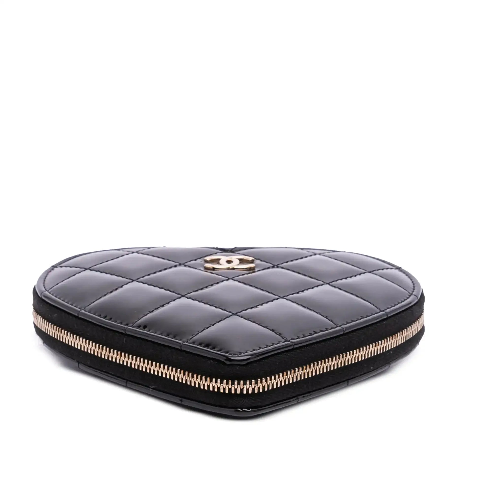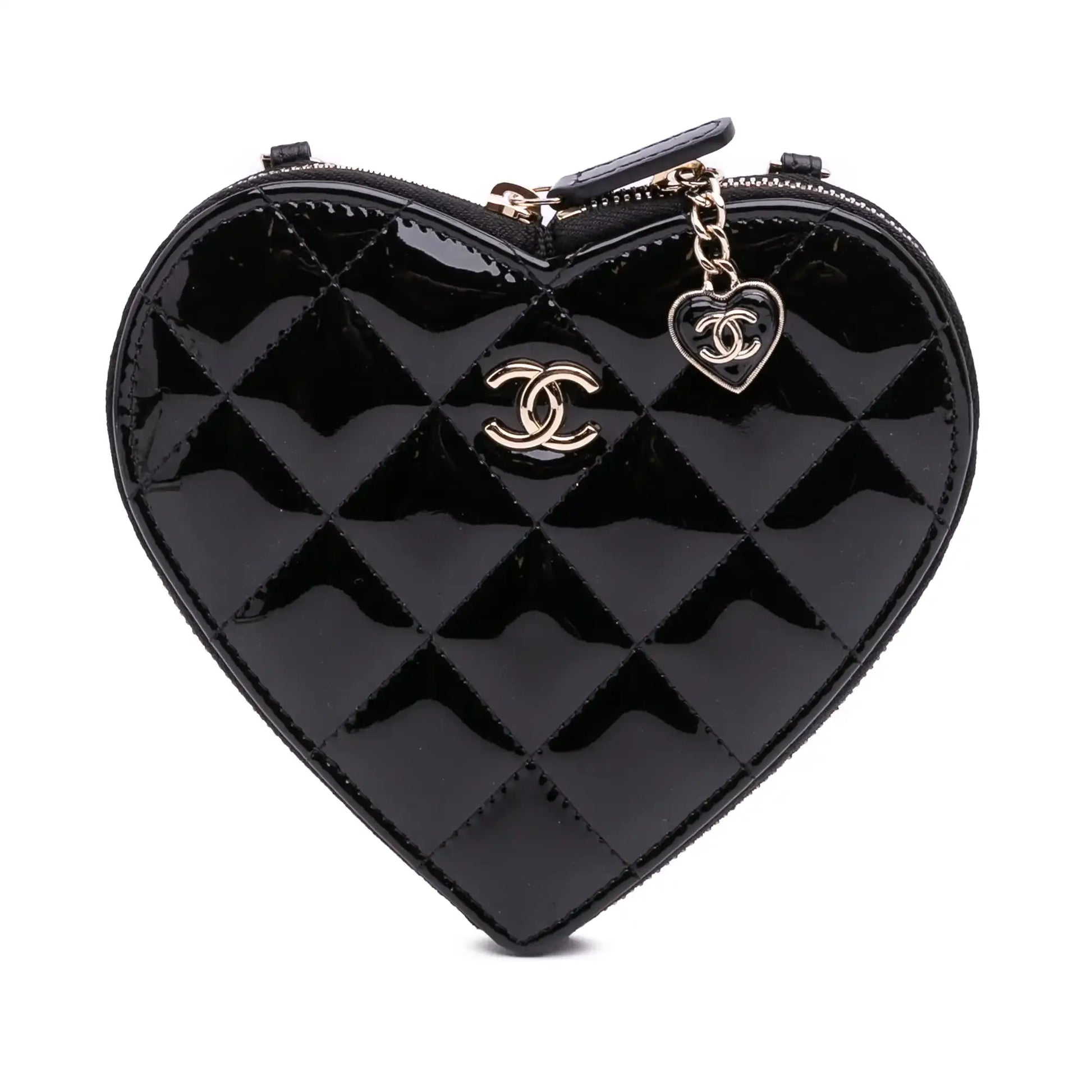 Chanel Quilted Patent Calfskin CC Heart Clutch With Chain