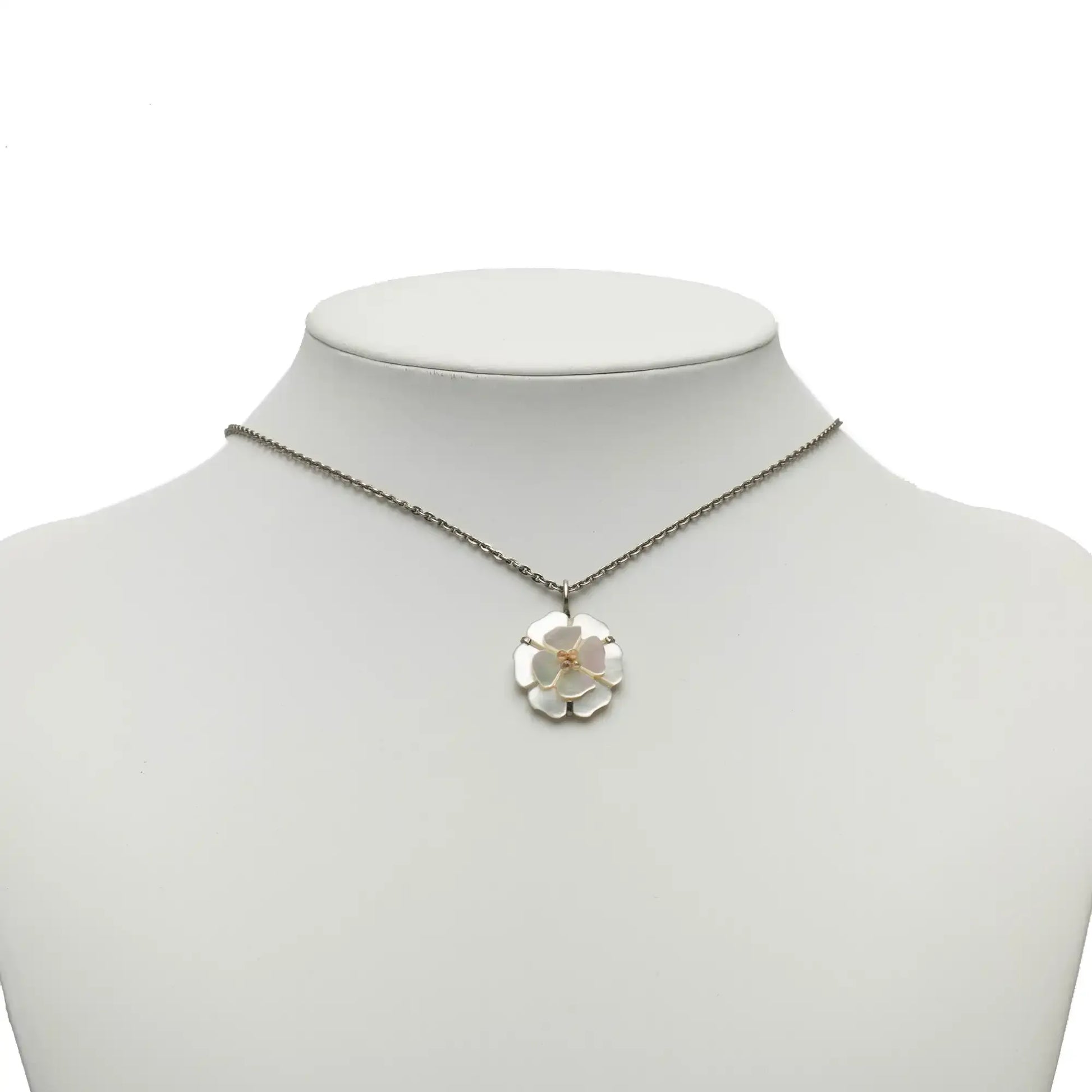 | Description | This necklace features a silver-tone chain, a resin shell camellia pendant, and a spring ring closure. | ||||||||||||