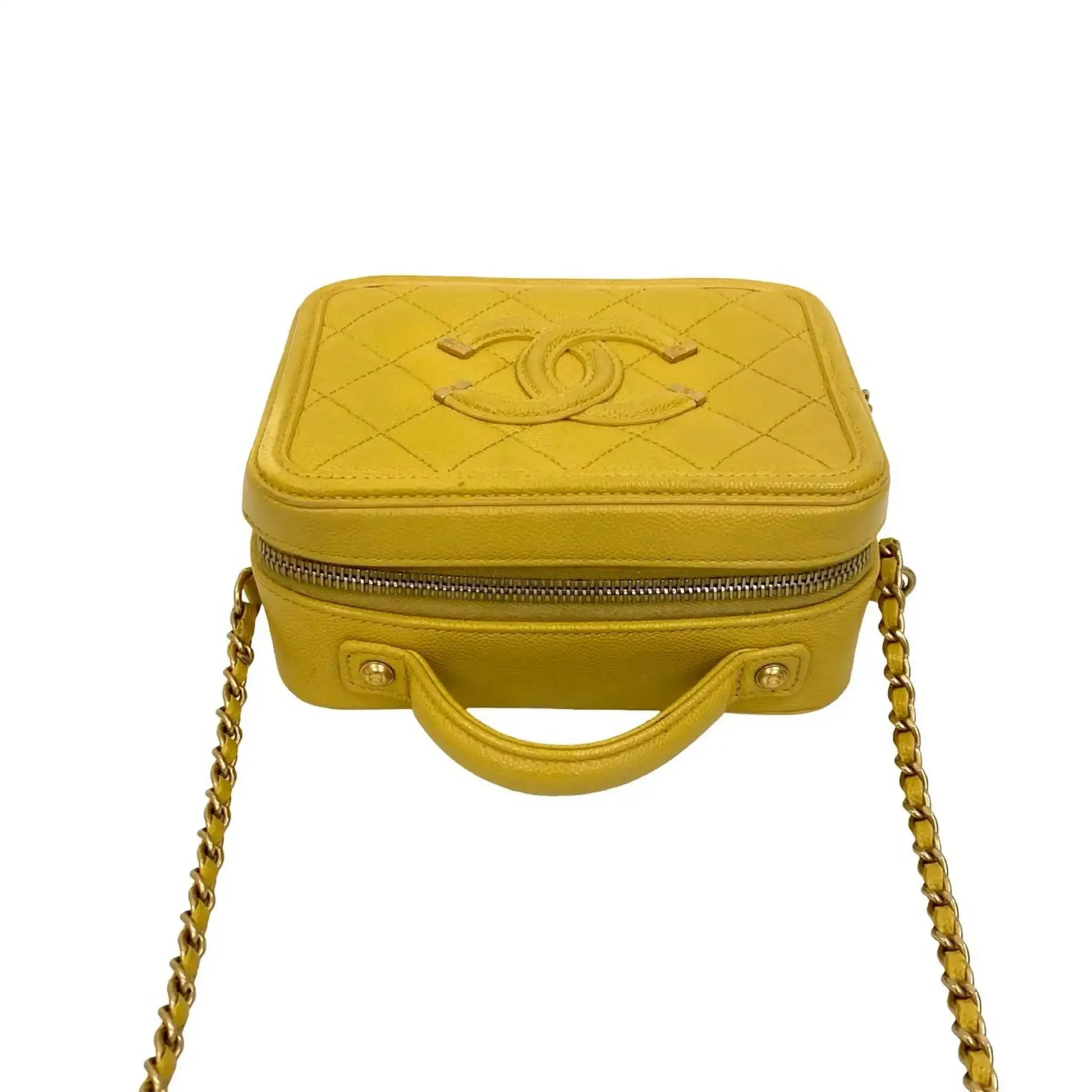 | Description | This satchel features a quilted caviar leather body, a flat leather top handle, a leather woven chain strap, a zip-around closure, and an interior slip pocket. | ||||||||||||