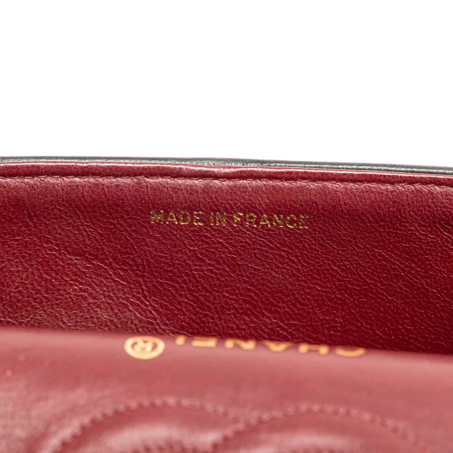 Description | This shoulder bag features a quilted lambskin leather body, leather woven chain shoulder straps, double front flaps with interlocking Cs and a twist lock closure, an exterior back slip pocket, and interior zip and slip pockets. Snap button is replaced. | ||||||||||||