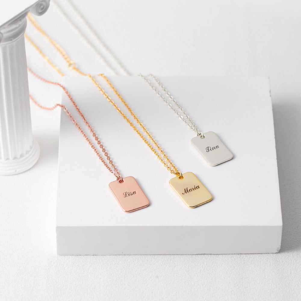 Classic Simple Square Card Customizable Name Design Versatile Necklace