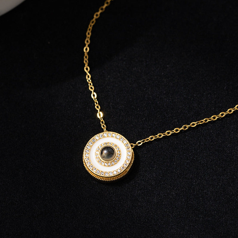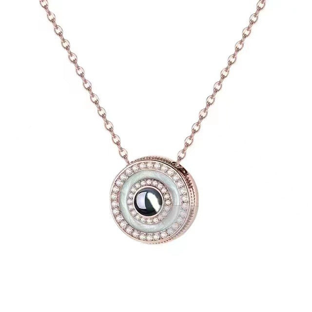 Welcome to the world of dainty fashion and discover our round double diamond projection necklace. A symbol of nobility and elegance, this necklace combines the magnificence of diamonds and the uniqueness of projection technology, making your precious memories and personalized messages shine in the light.