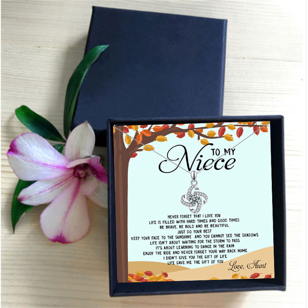This beautiful swirling four-leaf clover diamond design gift box pendant necklace will be the perfect gift for your niece. It not only shows a cute and stylish atmosphere, but also conveys your love and blessings to your niece. Whether it's a birthday, holiday, or other special occasion, this exquisite gift will bring endless joy and surprise to her. Choose this special gift to make your niece feel special in your heart and always remember your love and blessings for her.