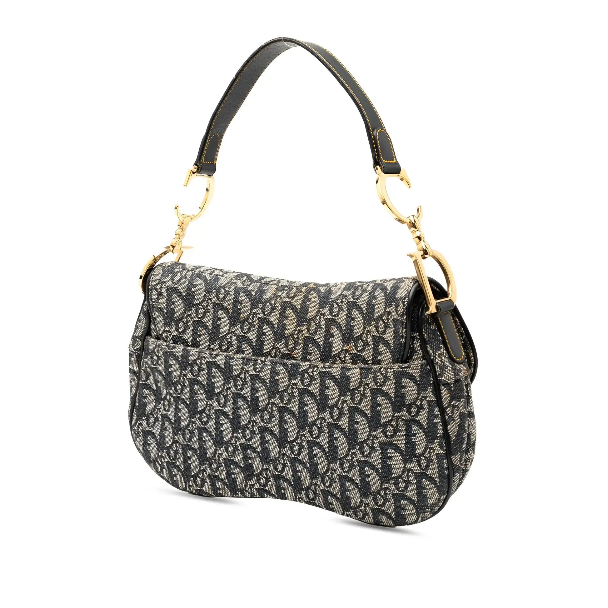 | Description | The Double Saddle features a canvas body, a flat leather strap with CD hardware, a front flap with the CD charm, an exterior back slip pocket, and an interior zip pocket. | ||||||||||||