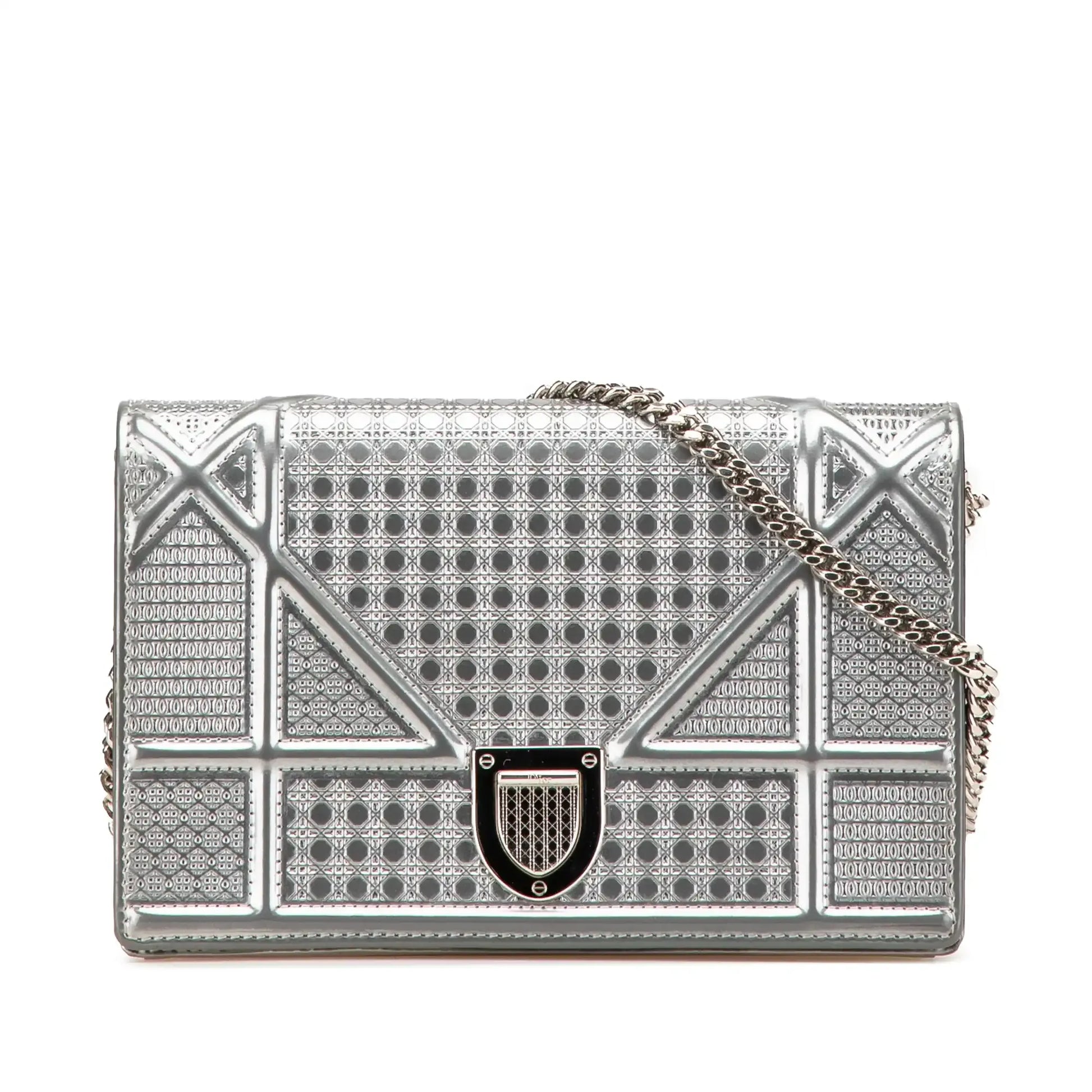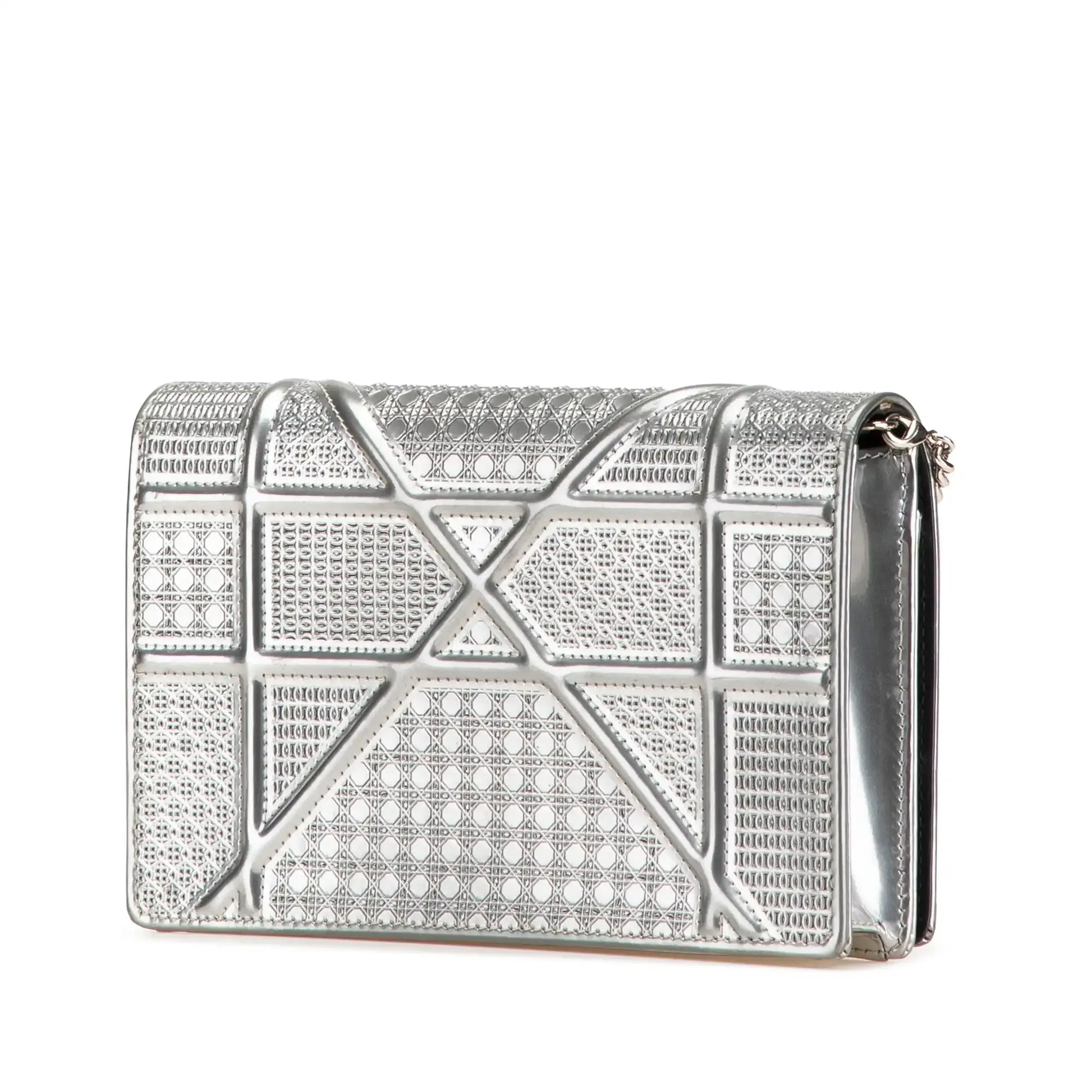 Dior Metallic Patent Microcannage Diorama Wallet on Chain