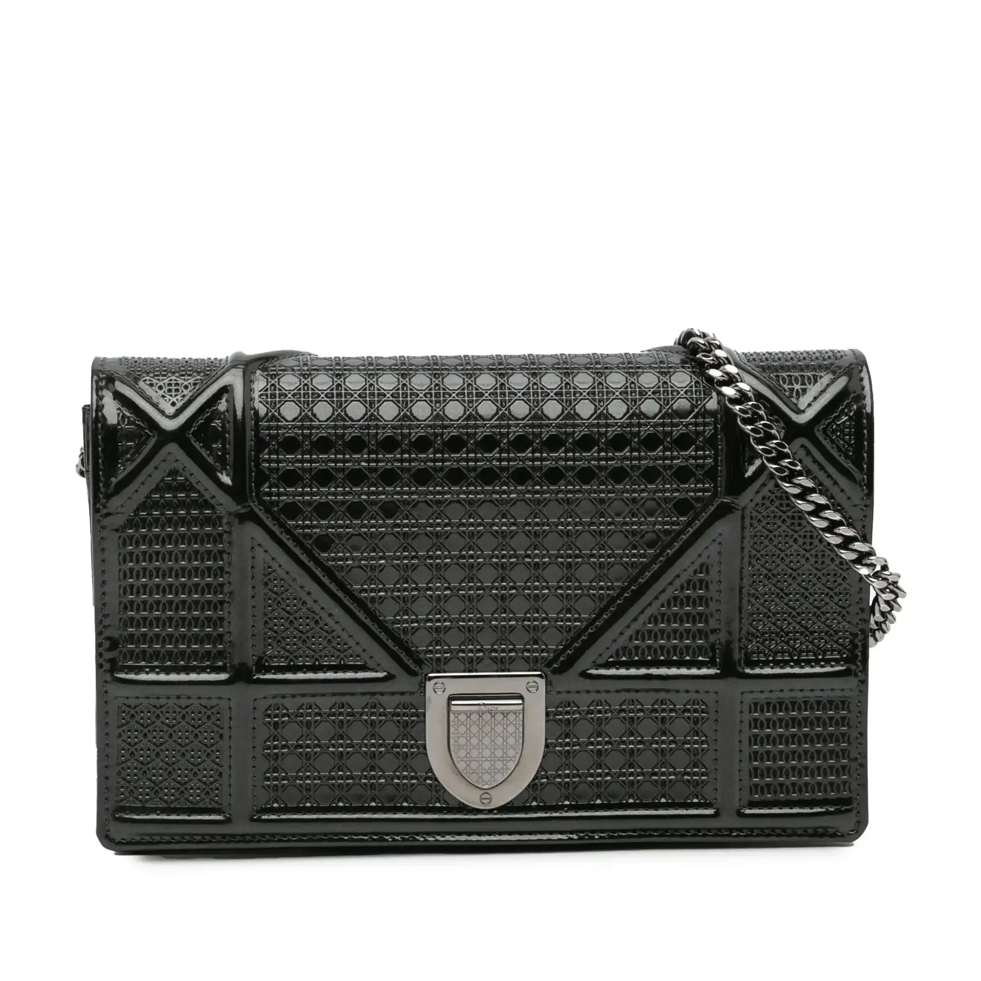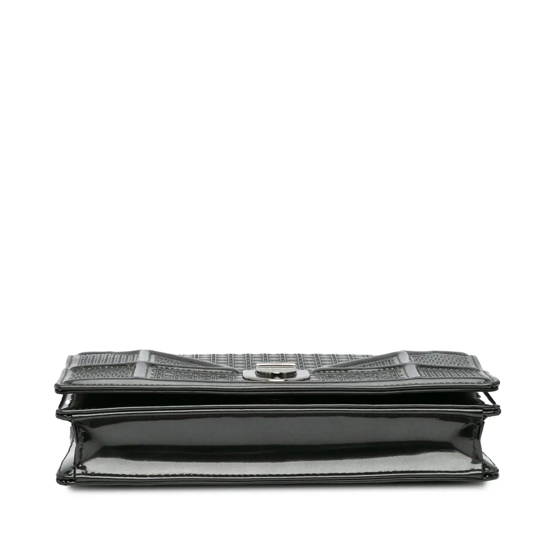 Dior Metallic Patent Microcannage Diorama Wallet on Chain