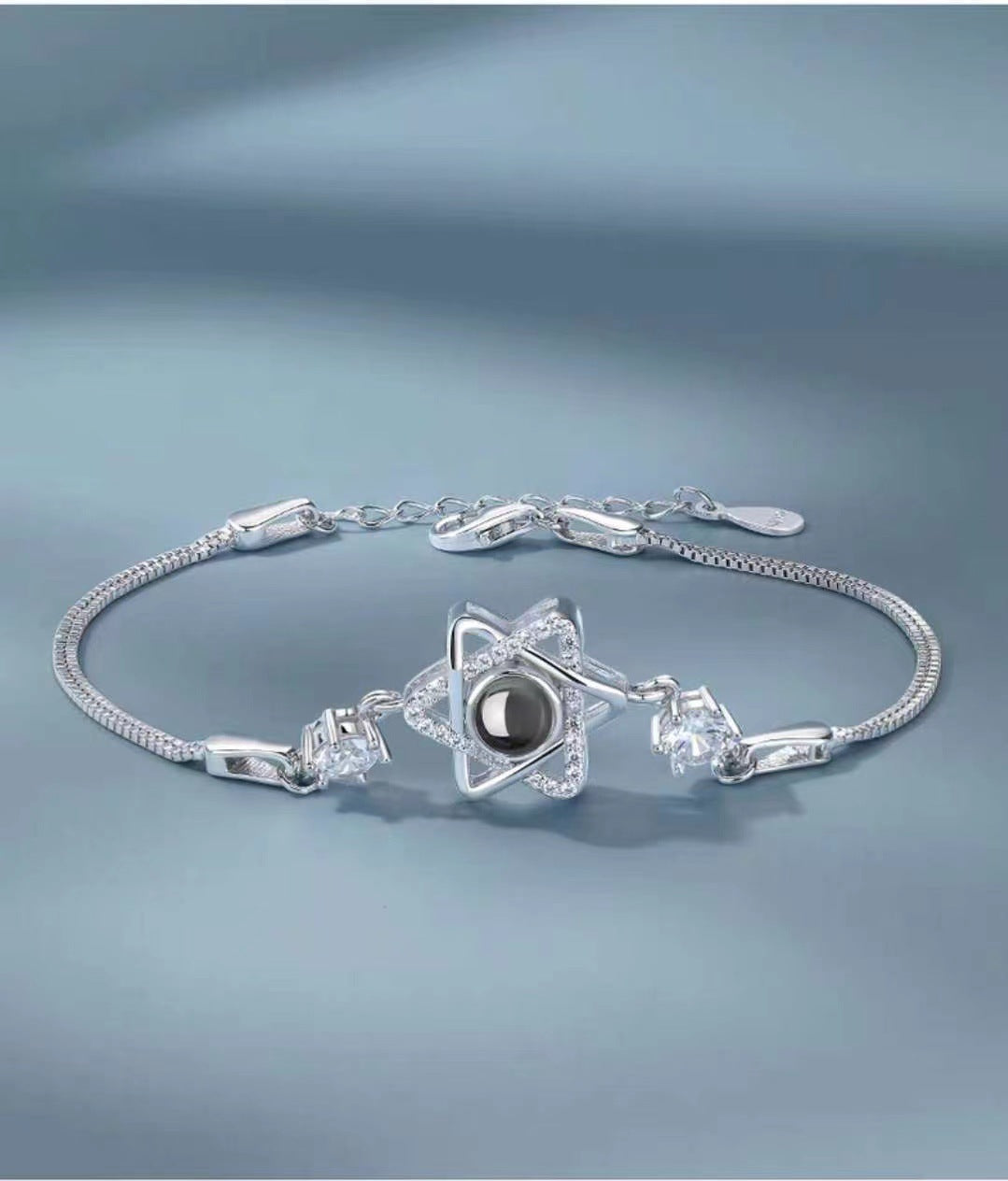 Welcome to the world of sophistication and dazzle, we proudly present the exquisite dazzling six-pointed star diamond projection bracelet. With its dazzling design, unique six-pointed star shape and modern projection technology, this bracelet presents you with a unique piece of jewelry.