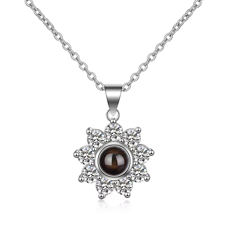 Welcome into the warmth and life-giving energy of the sun, we proudly present a stunning and stylish sunflower diamond projection necklace. The perfect combination of natural beauty and noble design, this jewelry will cherish your precious memories forever in a dazzling gemstone through the pattern of sunflowers and the luxury of diamonds.