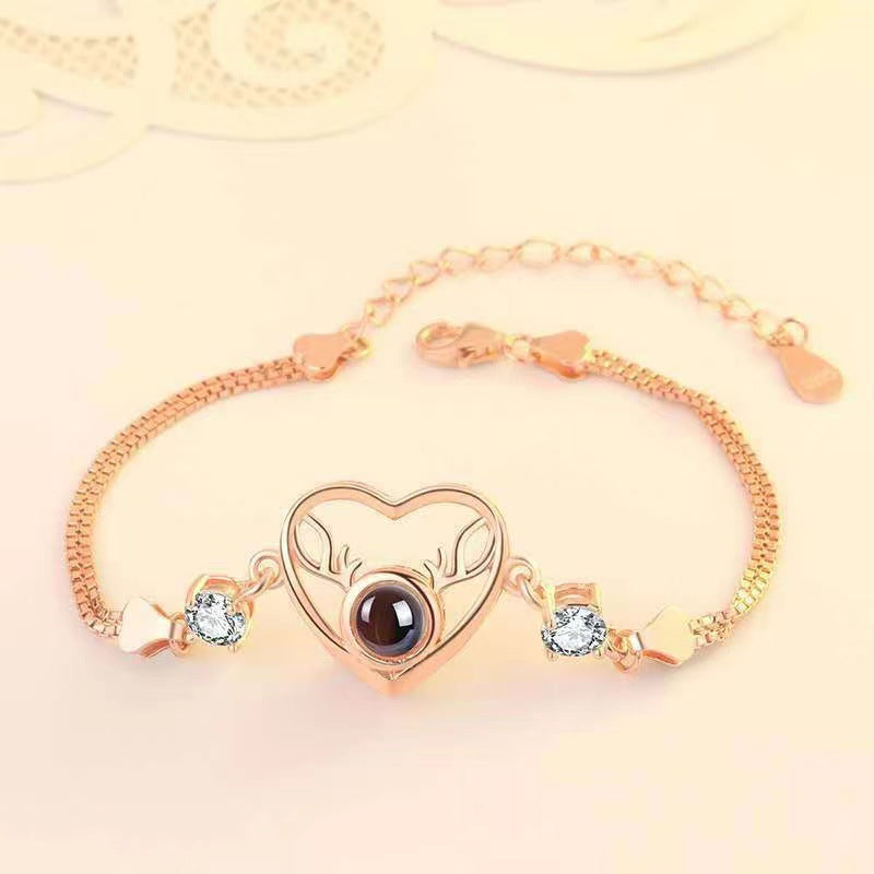 Exquisite and noble love heart with deer-shaped projection bracelet