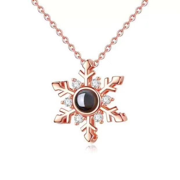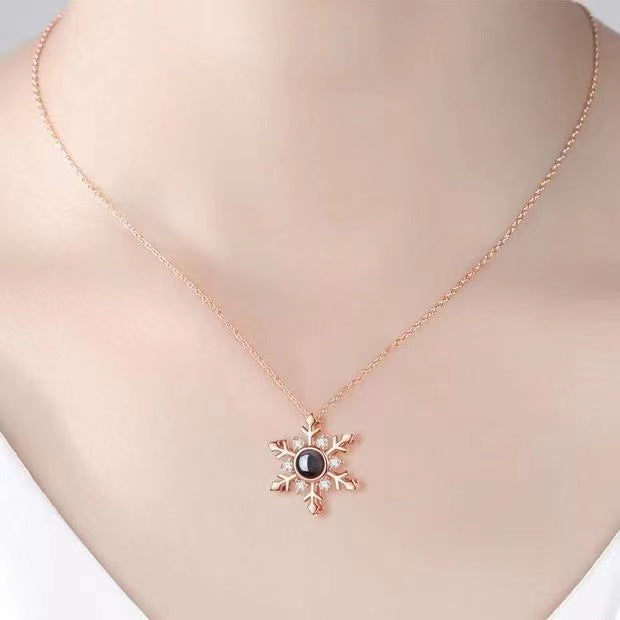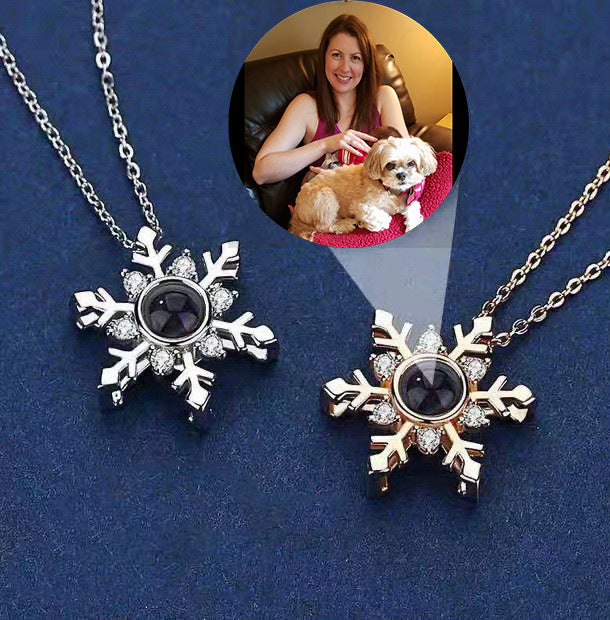 Welcome to the world of fine and regal jewelry, we proudly present an exquisite and regal Snowflake Inlaid Zircon Design Projection Necklace. Combining a delicate snowflake design with luxurious zircon elements, this jewelry will forever treasure your precious memories in a single gemstone through projection technology, adding a unique elegance and charm to your style.