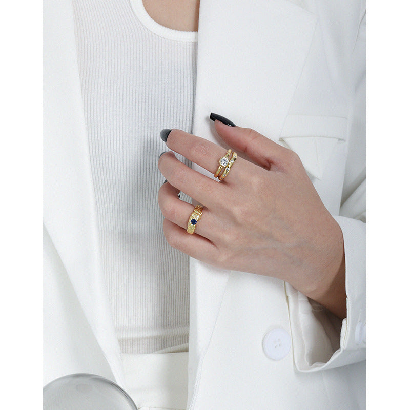 Fashion Blue CZ Irregualr 925 Sterling Silver Ring