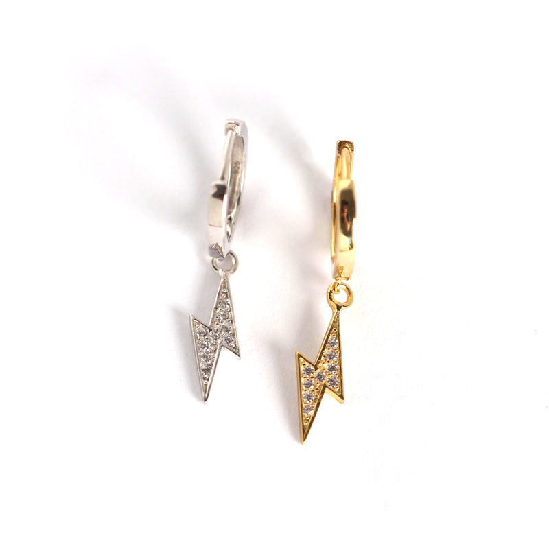 Fashion CZ Lightning 925 Sterling Silver Hoop Earrings