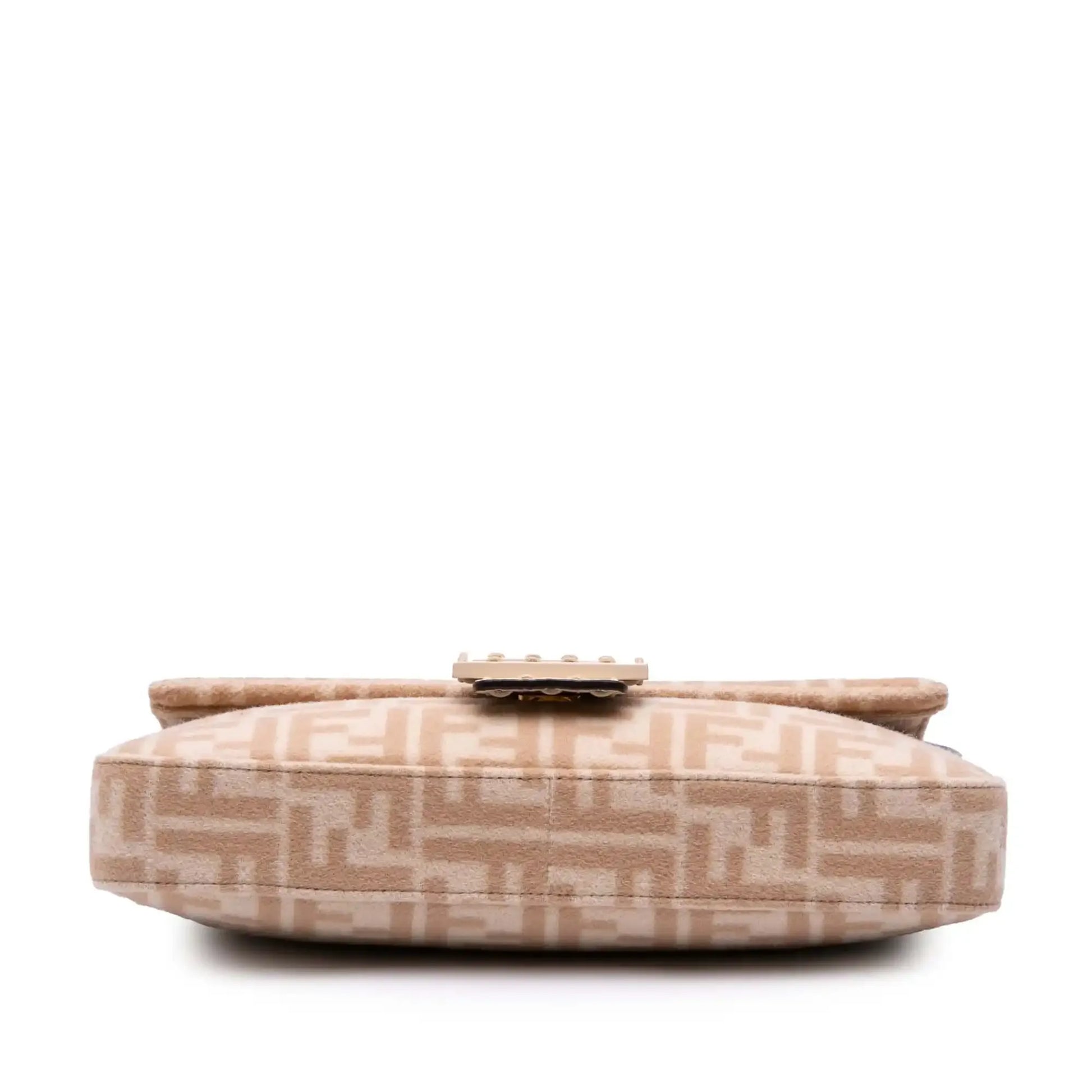 | Description | The Baguette features a wool body, a flat leather strap, a front flap with a strap and magnetic snap closure, and an interior zip pocket. | ||||||||||||