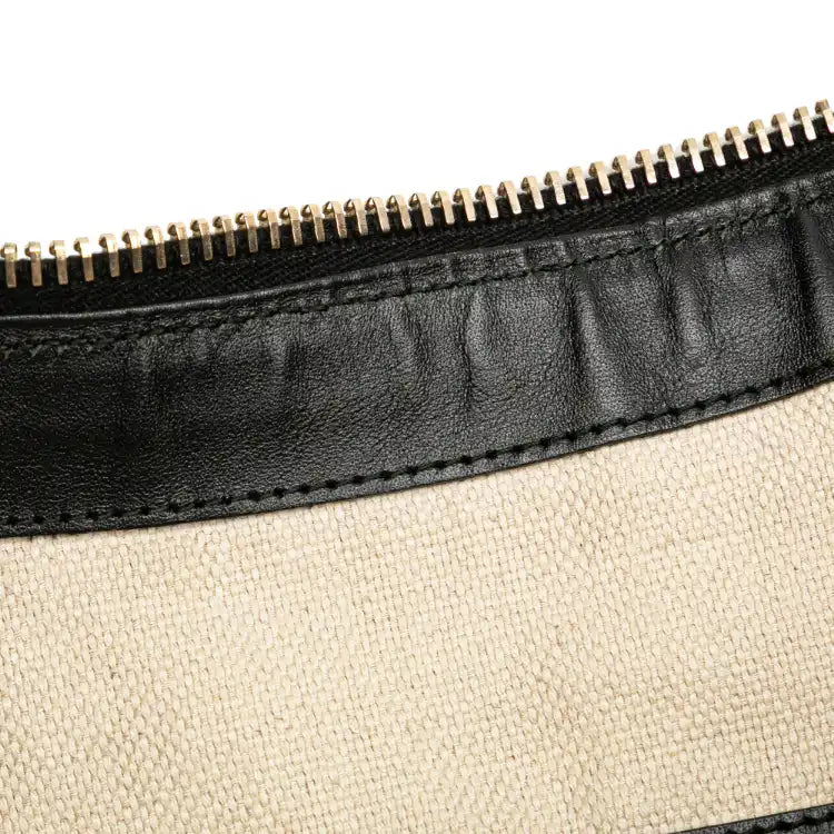 Description | This hobo bag features a canvas body with leather trim, a flat leather strap, a top zip closure, and interior zip and slip pockets. | ||||||||||||