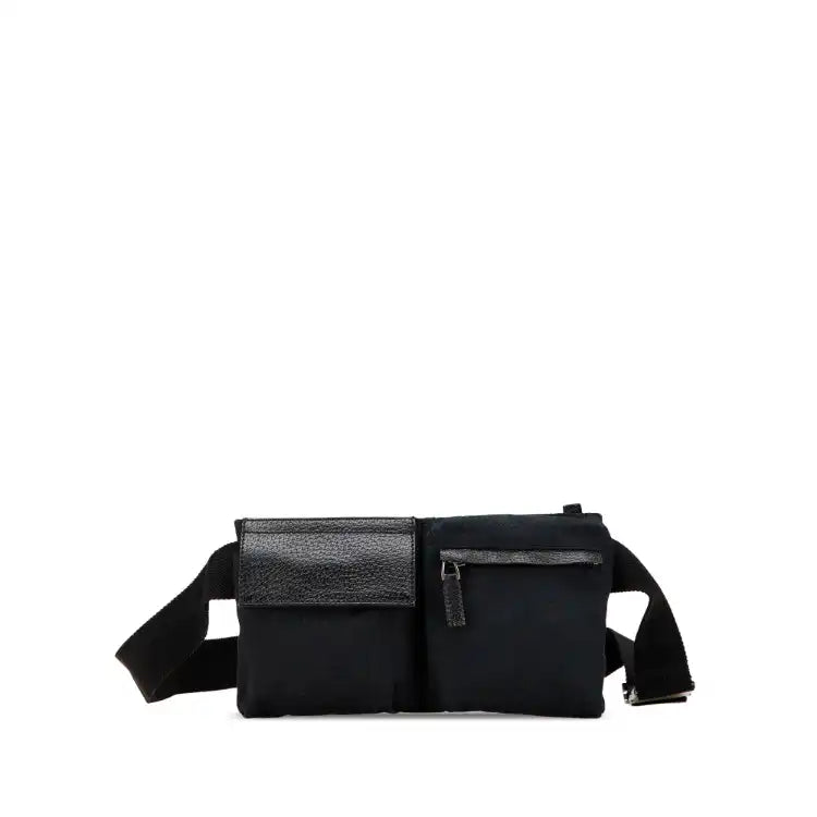 Description | This belt bag features a canvas body with leather trim, an adjustable waist strap, front flap and zip closure pockets, and an exterior back zip pocket. | ||||||||||||
