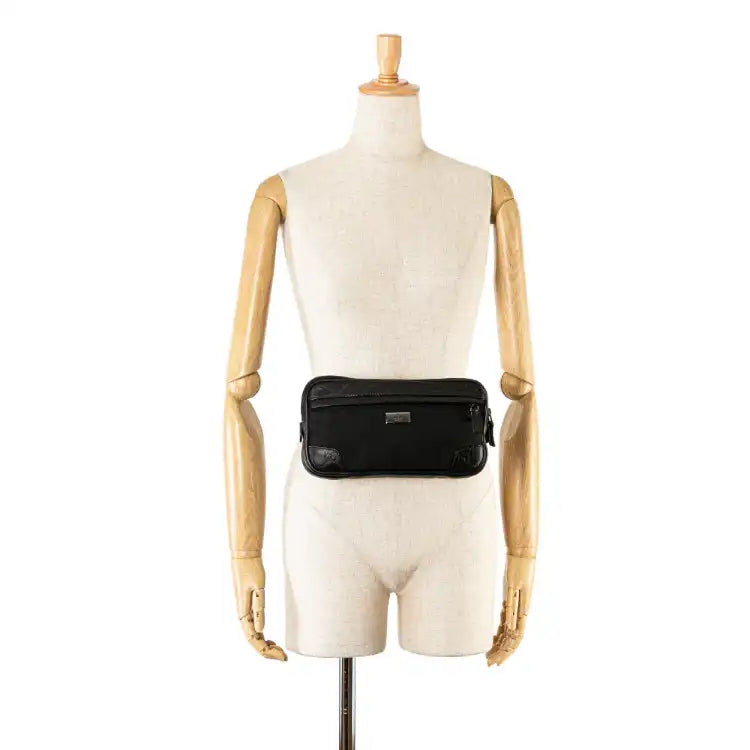 Description | This belt bag features a nylon and leather body, exterior zip pocket, flat waist strap, top zip closure, and interior slip pocket. | ||||||||||||