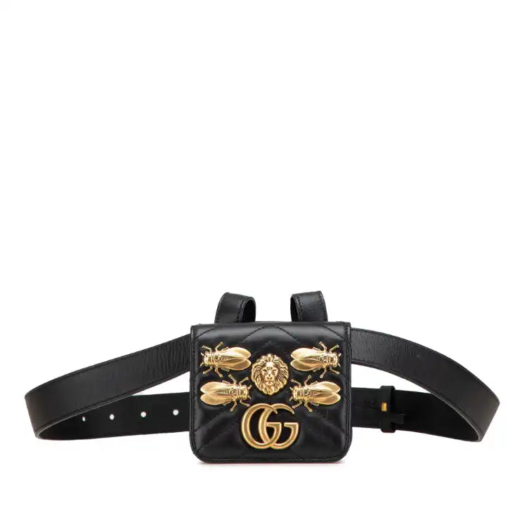 Gucci Mini GG Marmont Matelasse Leather Animal Studs Belt Pouch Bag