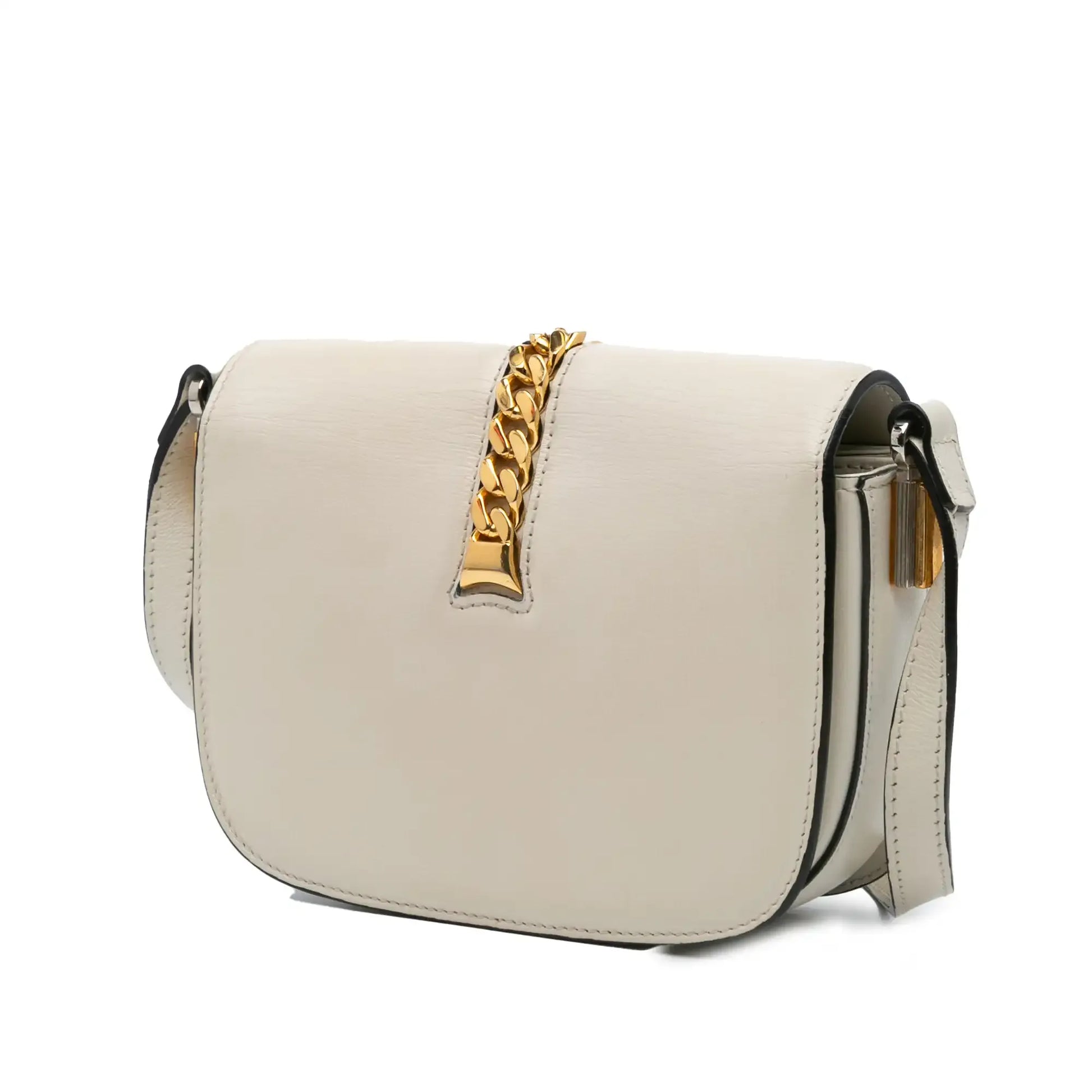 | Description | This crossbody bag features a leather body, an adjustable flat leather strap, and a flap with gold-tone chain link detail and metal lock closure. | ||||||||||||